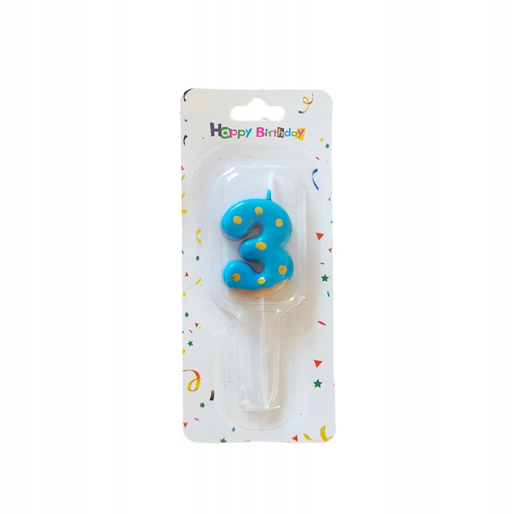Nasza niebieska świeczka w kształcie cyfry „3” to idealny wybór jako wykończenie tortu.