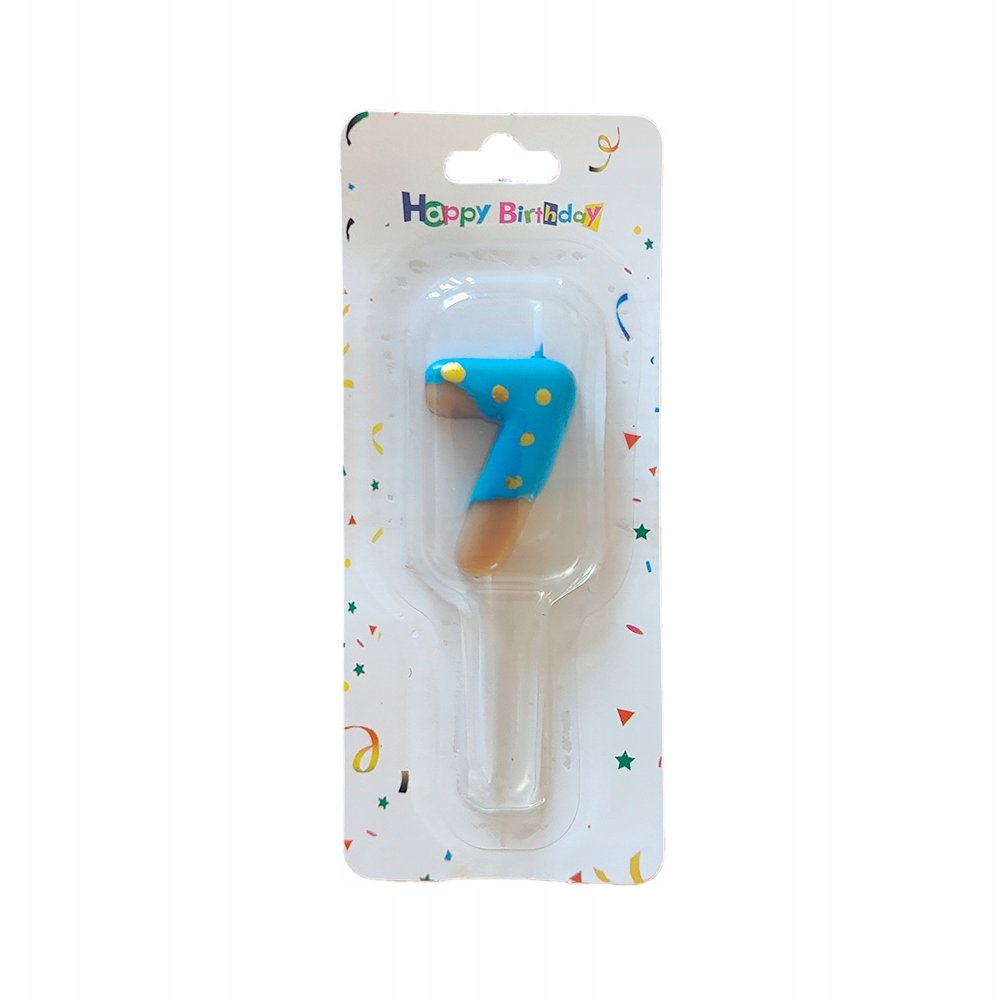 Nasza niebieska świeczka w kształcie cyfry „7” to idealny wybór jako wykończenie tortu.