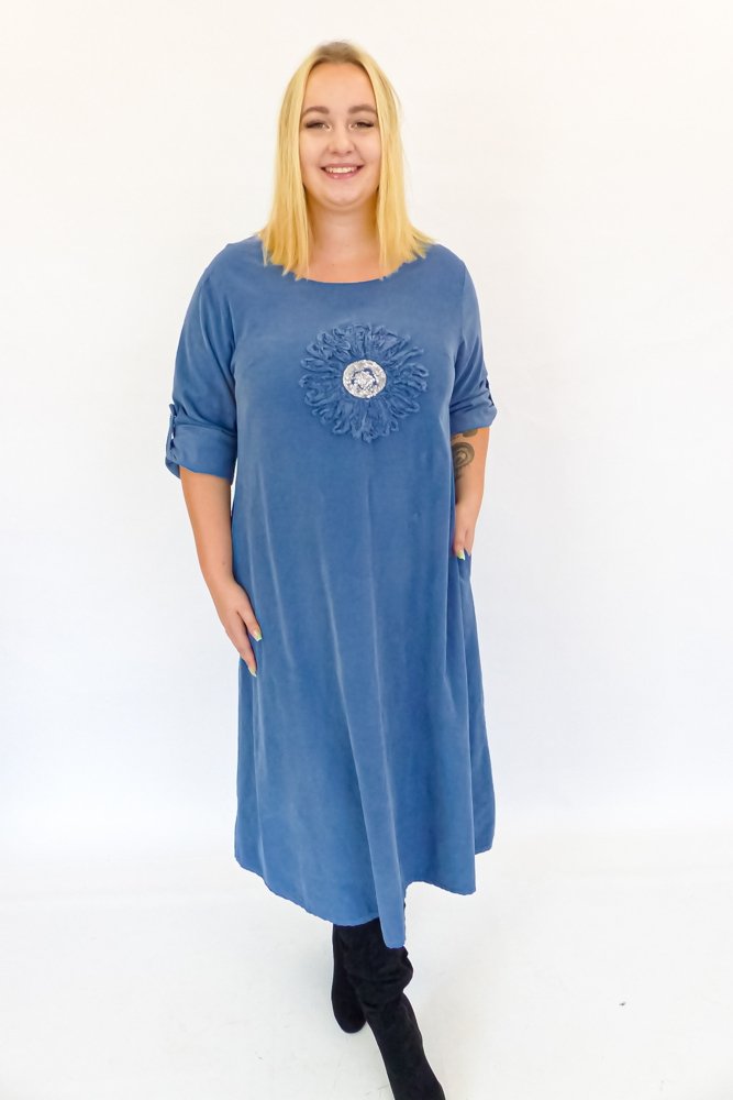 | Nazwa: | Niebieska Sztruksowa Sukienka z Kwiatem UNI |