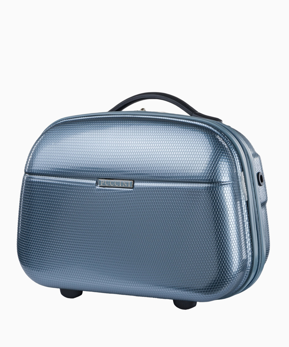 Wnętrze dzieli się na dwie komory. Frontową oddziela przegroda zapinana na suwak, na której znajduje się lusterko (mocowane na rzep) oraz dwie otwarte, przezroczyste kieszenie. W drugiej komorze znajdziemy elastyczne uchwyty na kosmetyki, dzięki czemu przewożone elementy przetrwają podróż w nienaruszonym stanie. Przed maksymalnym otworzeniem kuferka zapobiegają pasy zapinane na rzep. Akcesorium można przenosić w dłoni za pomocą wygodnego uchwytu lub na ramieniu, co umożliwia odpinany, regulowany pasek.