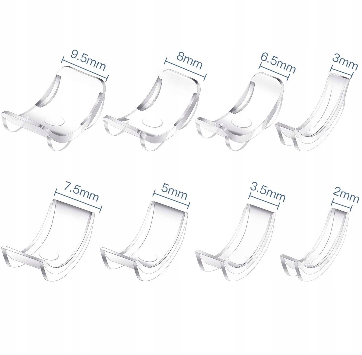 W opakowaniu znajdziemy 8 różnych szerokości, dzięki czemu można dopasować właściwie każdy pierścionek: