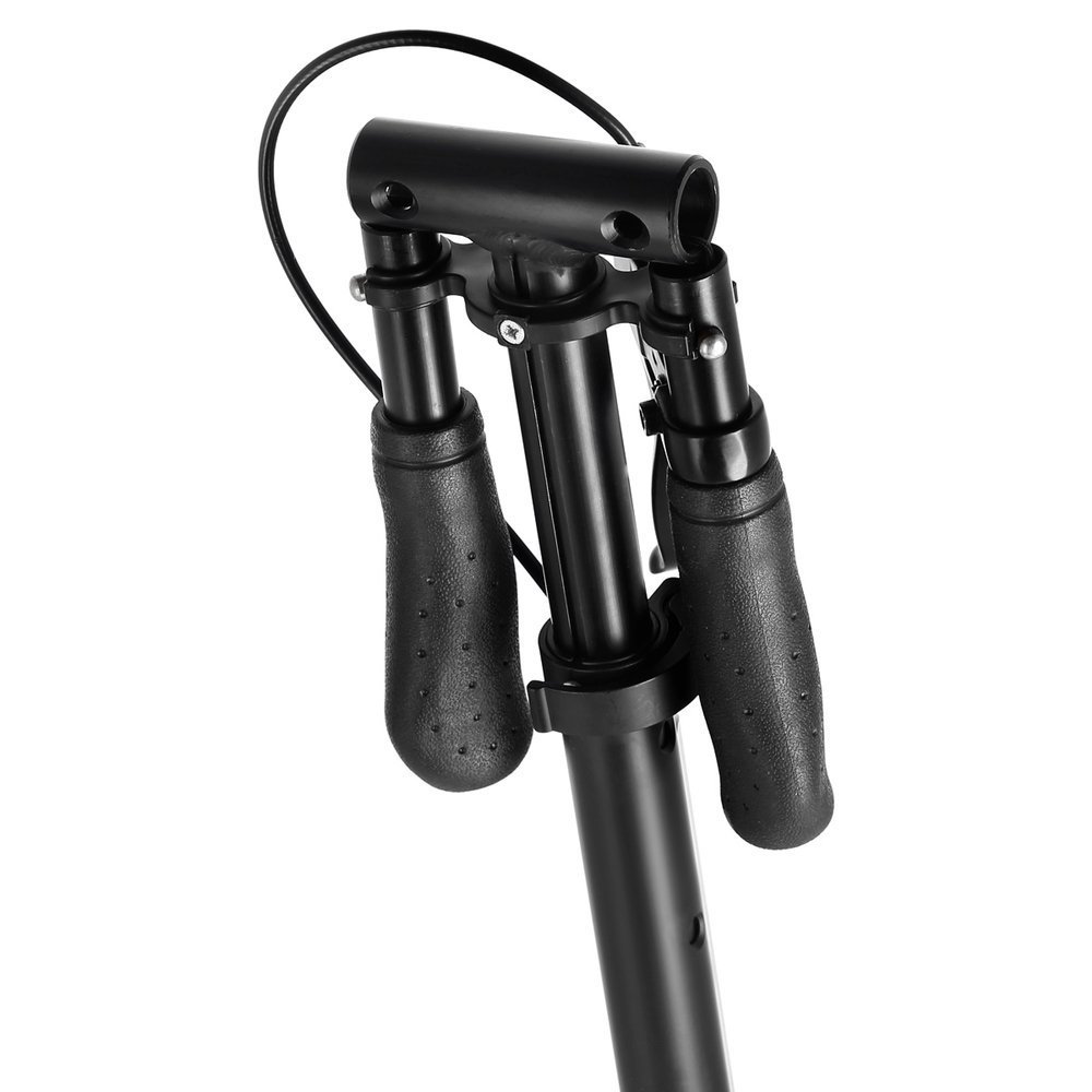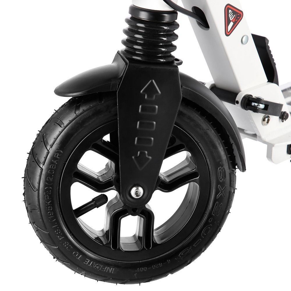 Kierownica wyposażona jest w uchwyty pokryte gumą, która zapewnia pewny chwyt oraz nie powoduje otarć. Duże koła i łożyska klasy ABEC9 podnoszą stabilność oraz płynność jazdy. Ponad to, koła są pompowane, co znacznie poszerza horyzonty, względem nawierzchni po której możemy się przemieszczać. Nierówny teren, nie będzie problemem.
