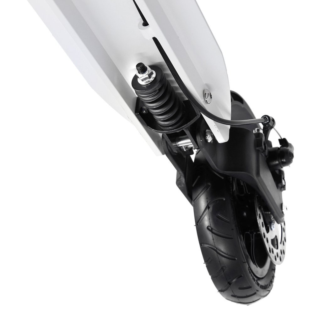 Hulajnoga posiada dodatkowy ręczny hamulec tarczowy umieszczony na tylnym kole. Dzięki niemu otrzymujemy dużo większą, niż w przypadku klasycznego nożnego hamulca, siłę hamowania. Umieszczenie go na kierownicy sprawia, że jest on dużo bardziej intuicyjny niż hamulec nożny, jest także dużo szybszy w użyciu. A co najważniejsze zastosowanie takiego rozwiązania powoduje bezpieczeństwo jazdy, nawet po mokrej nawierzchni. Dodatkowo zamontowane błotniki zapobiegają ochlapaniu.