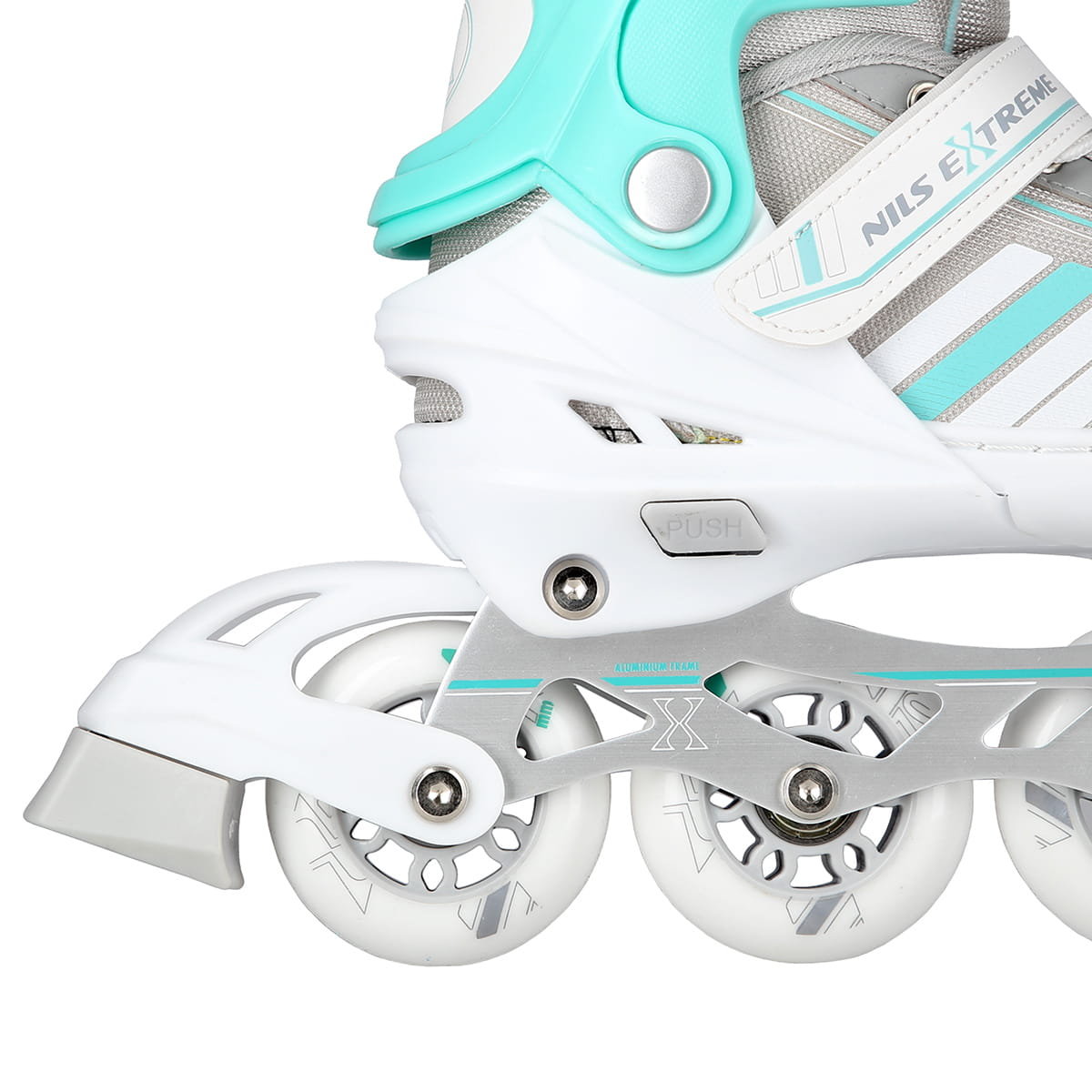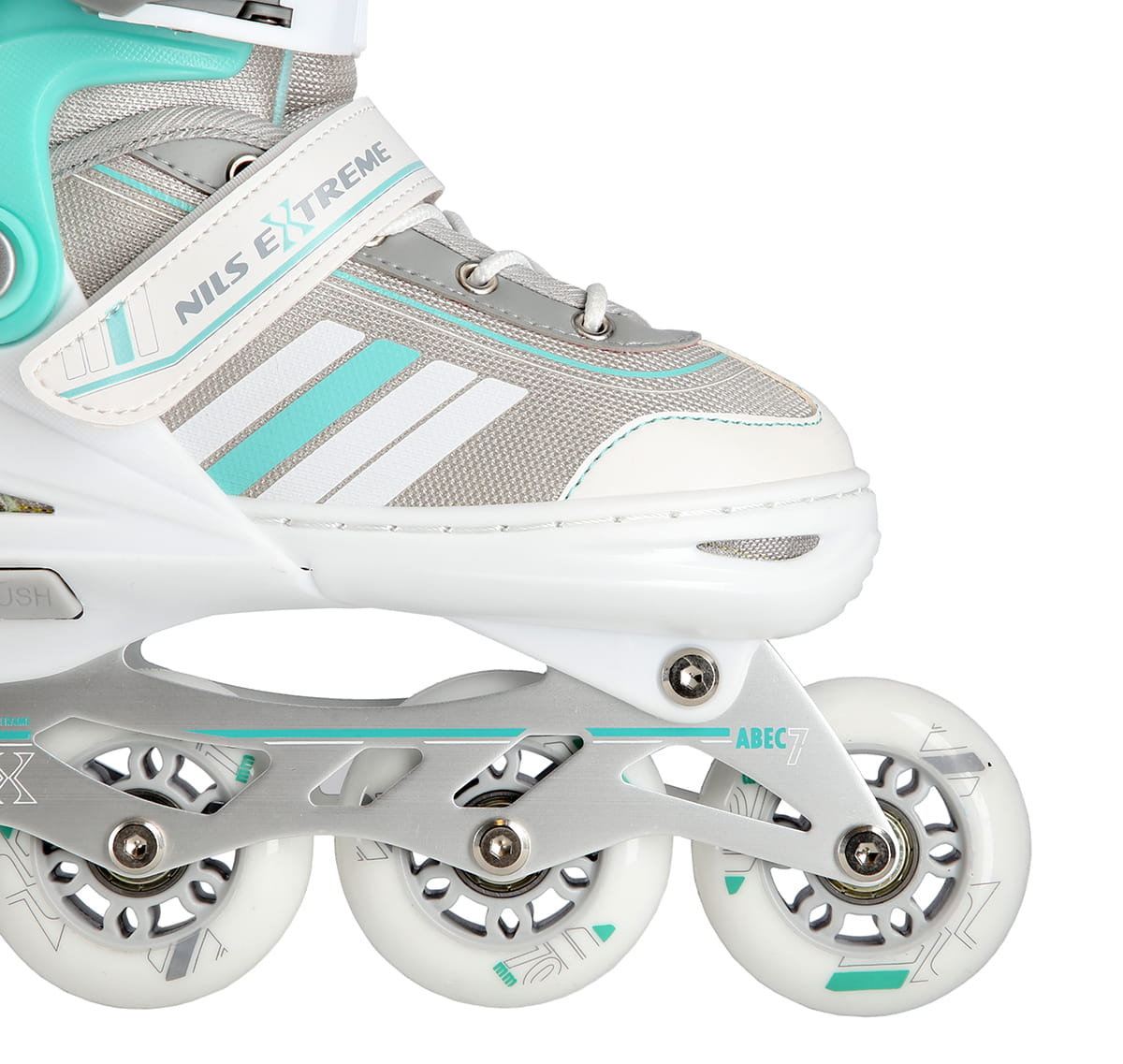 łyżworolki nh18191, to czysta radość z jazdy. Łyżworolka wyposażona jest w specjalną aluminiową płozę oraz hamulec, co zapewnia bezpieczeństwo podczas jazdy. Z kolei kółka oraz łożyska klasy abec7, pozwalają na mniejsze opory toczenia, czyli szybszą jazdę.