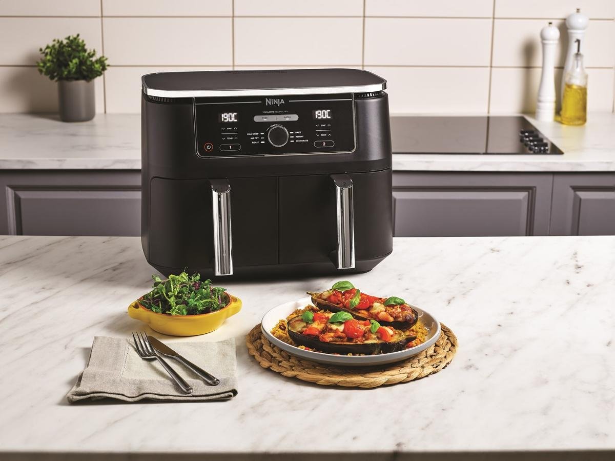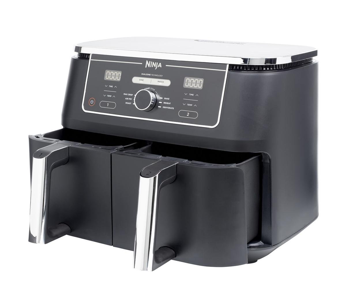 Frytkownica beztłuszczowa Ninja Max Dual AF400EU 2470W 9,5L Dwie strefy XXL Air Fryer stanowi doskonałe uzupełnienie niejednej kuchni. Urządzenie świetnie sprawdza się podczas przygotowywania frytek,