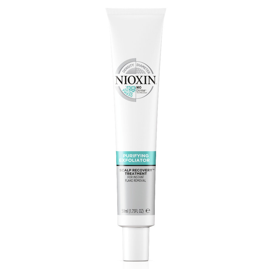 Nioxin Scalp Recovery Treatment Purifying Exfoliator to profesjonalny preparat oczyszczająco-złuszczający walczący z łupieżem. Produkt wyłącznie do stosowania w salonie fryzjerskim. Specyfik bazuje na technologii NIODerma z mikrogranulkami celulozy, która normalizuje łuszczącą się skórę głowy i stanowi podstawę działania trzyczęściowego systemu NIOXIN Scalp Recovery, która dzięki regularnemu stosowaniu pozwala zapobiec nawrotom łupieżu. Preparat Nioxin Scalp Recovery Treatment Purifying Exfoliator stosuje się przed myciem szamponem, by mechanicznie usunąć złuszczony naskórek, zanieczyszczenia i nagromadzone osady powstałe na przykład z martwych komórek skóry głowy. Dzięki temu skalp zostaje dogłębnie i długofalowo oczyszczony i odświeżony, następuje jego regeneracja i odżywienie. Wyrób wykorzystuje mechanizm złuszczania mechanicznego w oparciu o działanie mikrogranulek celulozy. Dzięki zawartym składnikom już podczas złuszczania niwelujemy przyczyny powstawania łupieżu.