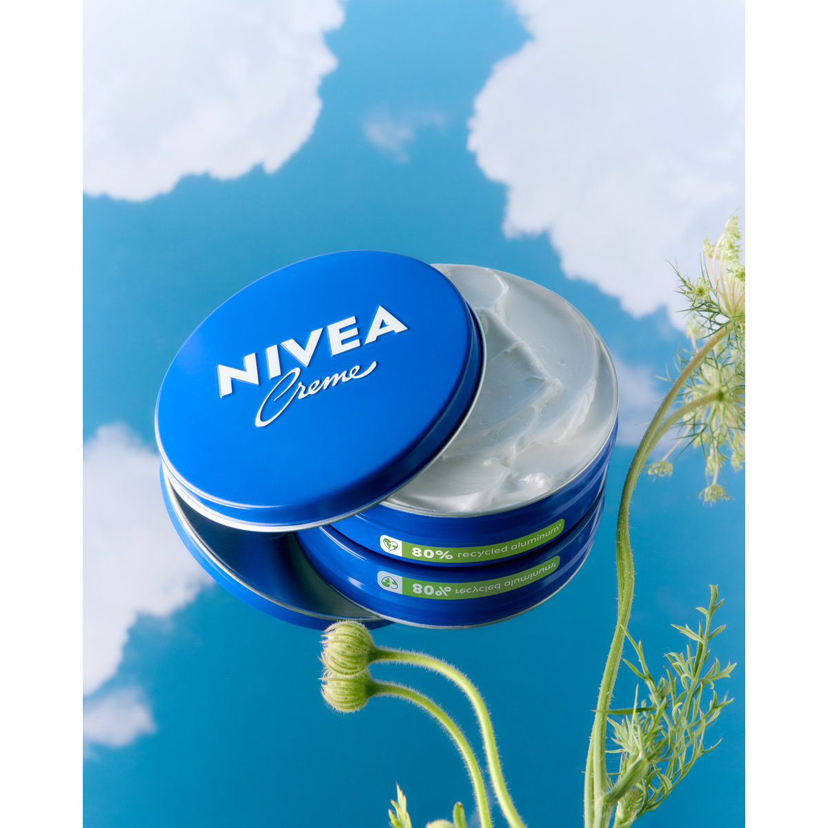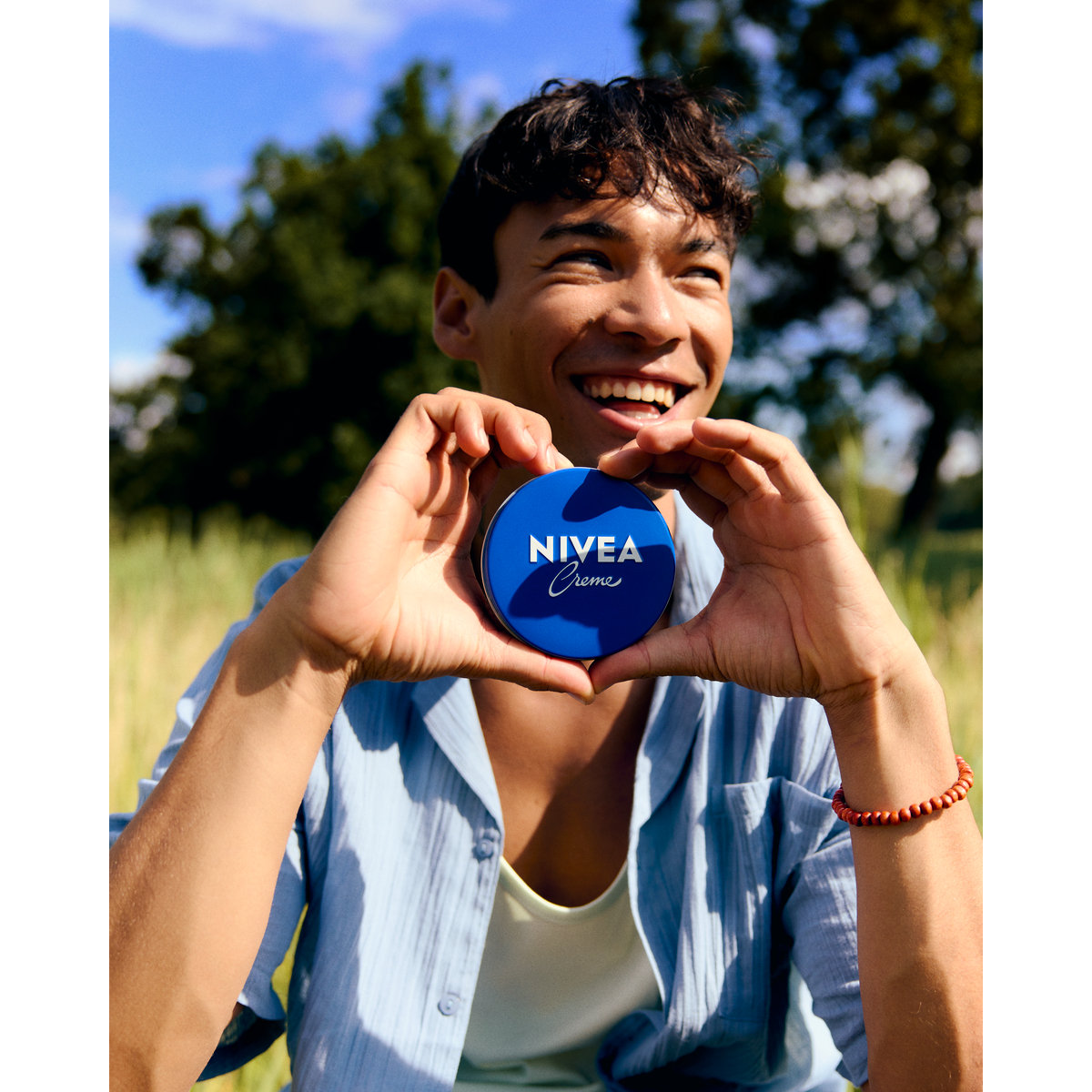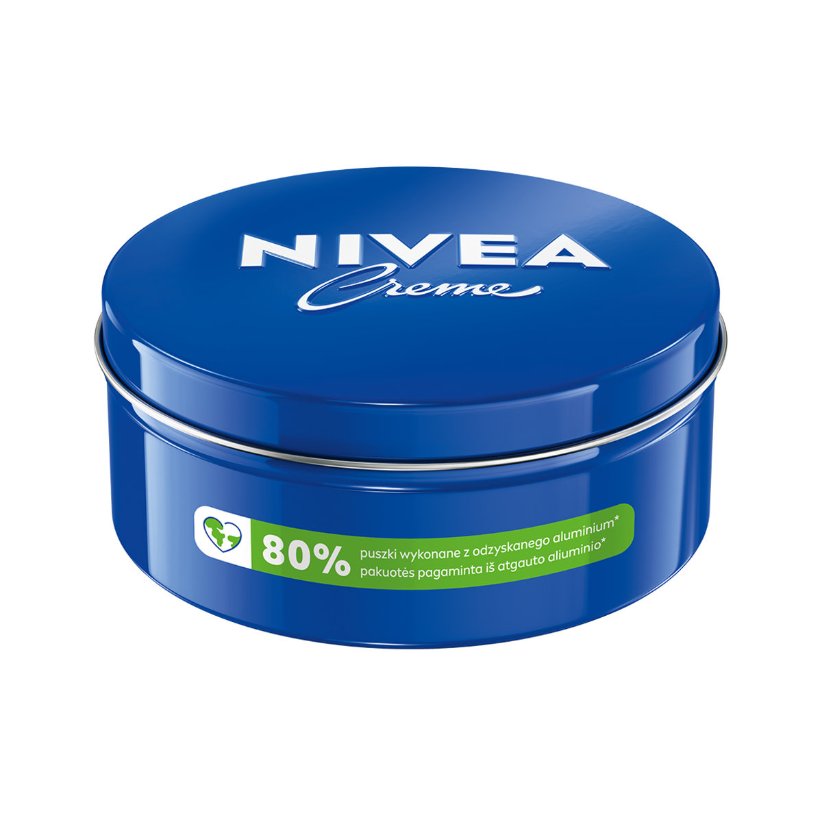 NIVEA Creme to krem nawilżający dla całej rodziny. Ten kultowy produkt doskonale nadaje się do pielęgnacji twarzy oraz ciała i sprawia, że skóra jest świeża, gładka i zadbana. NIVEA Creme zawiera łatwo przyswajalny Eucerit®, który zapewnia skórze ochronę, jakiej potrzebuje, by pozostać miękką i odżywioną. Idealny na co dzień i na każdy moment, w którym Twoja skóra potrzebuje pielęgnacji. Krem nie zawiera środków konserwujących, dzięki czemu pielęgnuje w naturalny sposób. Jego regularne stosowanie pozostawi Twoją skórę nie tylko dobrze nawilżoną, ale również zadba o regenerację jej warstwy lipidowej. Tolerancja dla skóry potwierdzona dermatologicznie. 80% puszki jest wykonane z aluminium pochodzącego z recyklingu.