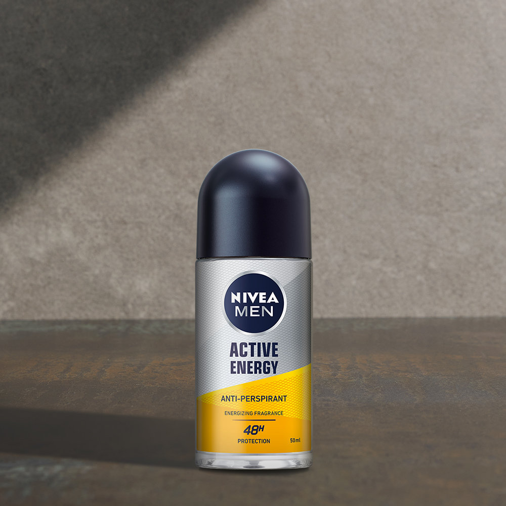 Antyperspirant NIVEA MEN Active Energy zapewnia niezawodną ochronę przed wilgocią pod pachami i nieprzyjemnym zapachem potu. Unikalna formuła z kompleksem cynku i substancjami aktywnymi, które chronią w nawet najbardziej stresujących sytuacjach. Zwalcza składniki potu o różnym zapachu, chroniąc Cię przed nieprzyjemnym zapachem ciała przez 48 godzin. Jednocześnie NIVEA Active Energy delikatnie pielęgnuje skórę pod pachami.