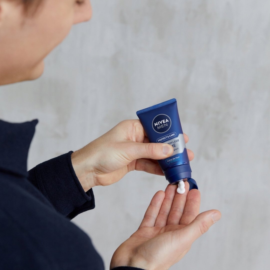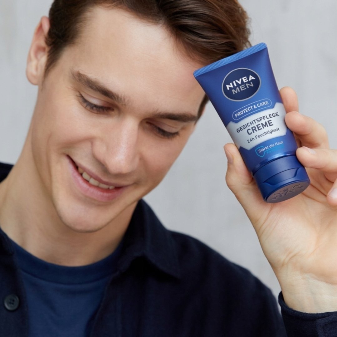Nawilżający krem do twarzy dla mężczyzn NIVEA MEN PROTECT & CARE to intensywnie nawilżająca formuła z aloesem i prowitaminą B5. Męski krem pielęgnuje skórę i wzmacnia jej naturalną barierę ochronną. Zapewnia skórze twarzy natychmiastowe i długotrwale, 24-godzinne nawilżenie i zapobiega wysuszaniu. Kojący krem dla mężczyzn z aloesem dodatkowo łagodzi i regeneruje skórę po goleniu. Ma nietłustą konsystencję i szybko się wchłania. Formuła z 95% składników pochodzenia naturalnego została stworzona z myślą o Twojej skórze oraz naszej planecie - nie zawiera mikroplastików**. Tolerancja dla skóry potwierdzona dermatologicznie.