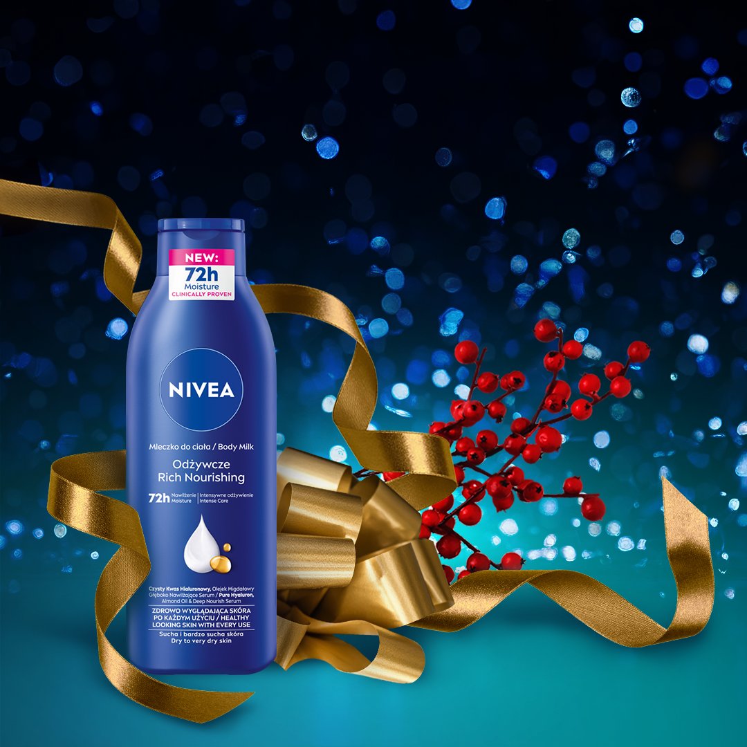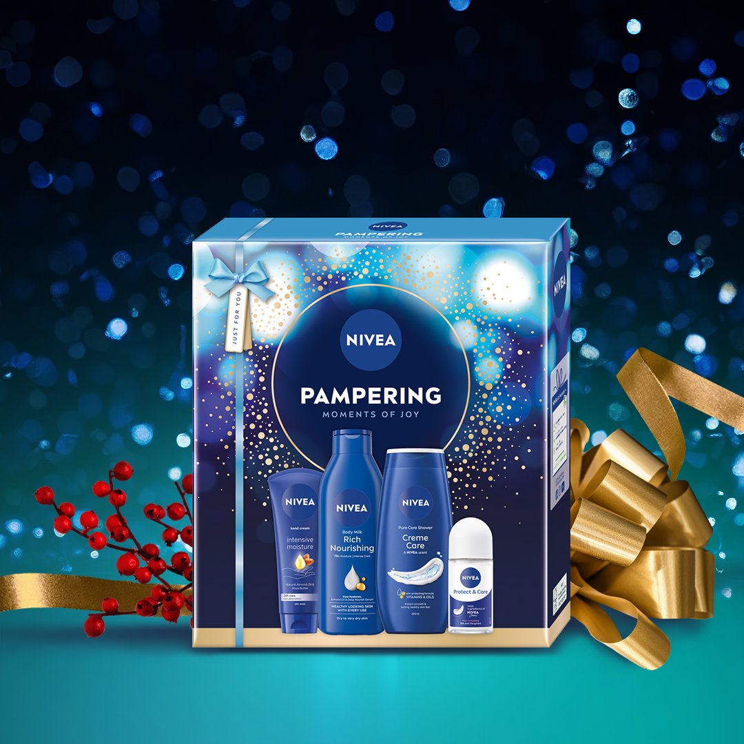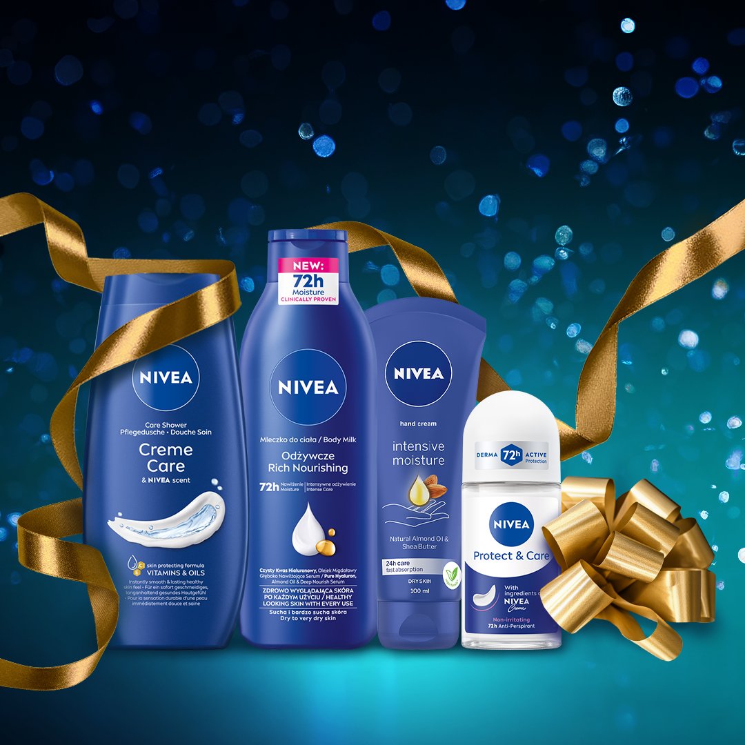 Szukasz ciekawego pomysłu na prezent na Święta? Podaruj bliskiej osobie coś wyjątkowego. Świąteczny zestaw do pielęgnacji ciała NIVEA PAMPERING! Zestaw zawiera aż 4 produkty do kompleksowej pielęgnacji ciała: żel pod prysznic, krem do rąk, antyperspirant, mleczko do ciała oraz okolicznościową kartkę świąteczną, jako dodatek do prezentu. Pielęgnujące formuły dostarczą skórze wyjątkowej ochrony i troski. To idealny świąteczny zestaw kosmetyków dla kobiety w każdym wieku. Postaw na prezent i pielęgnację w jednym – od NIVEA. Tolerancja dla skóry potwierdzona dermatologicznie. Zestaw do pielęgnacji ciała zawiera: - NIVEA Krem do rąk Intensywne Nawilżenie Zapewnia 24-godzinną pielęgnację, szybko się wchłania i odżywia skórę, - NIVEA Antyperspirant roll-on dla ochrony przed potem i pielęgnacji skóry pod pachami, - NIVEA Creme Care żel pod prysznic z drogocennymi olejkami i witaminami C & E - NIVEA Odżywcze mleczko do ciała wzbogacone o głęboko nawilżające serum, naturalny olejek migdałowy i witaminę E dla intensywnego odżywienia.