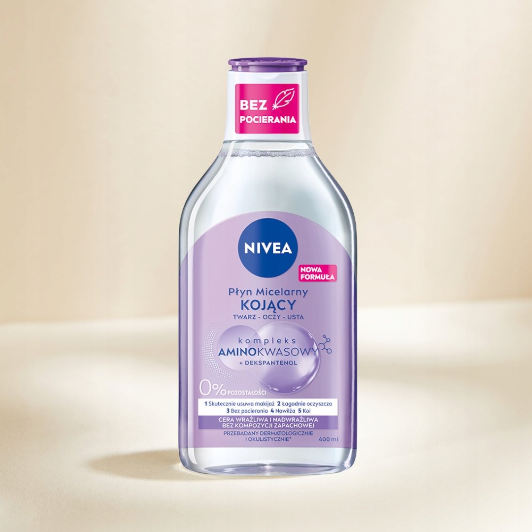 Specjalnie opracowany dla skóry wrażliwej Kojący Płyn Micelarny NIVEA usuwa makijaż, oczyszcza, nawilża i koi skórę bez pozostawiania śladów.