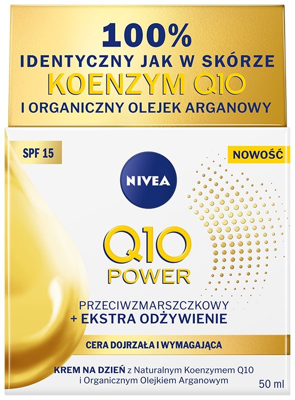 Właśnie zrecenzowałem Nivea, Q10 Power Przeciwzmarszczkowy + Ekstra Odżywienie krem na dzień SPF15 z naturalnym koenzymem Q10 i organicznym olejkiem arganowym 50ml