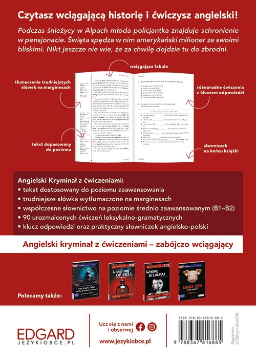 Usiądź wygodnie, zanurz się w zimowej scenerii Alp, czytaj wciągającą historię i ucz się angielskiego przy okazji, nie tylko od święta. Jeśli chcesz, możesz także wziąć nasz kryminał ze sobą do plecaka czy torebki – wygodny format umożliwi ci czytanie bez wysiłku, kiedy akurat masz czas i ochotę.