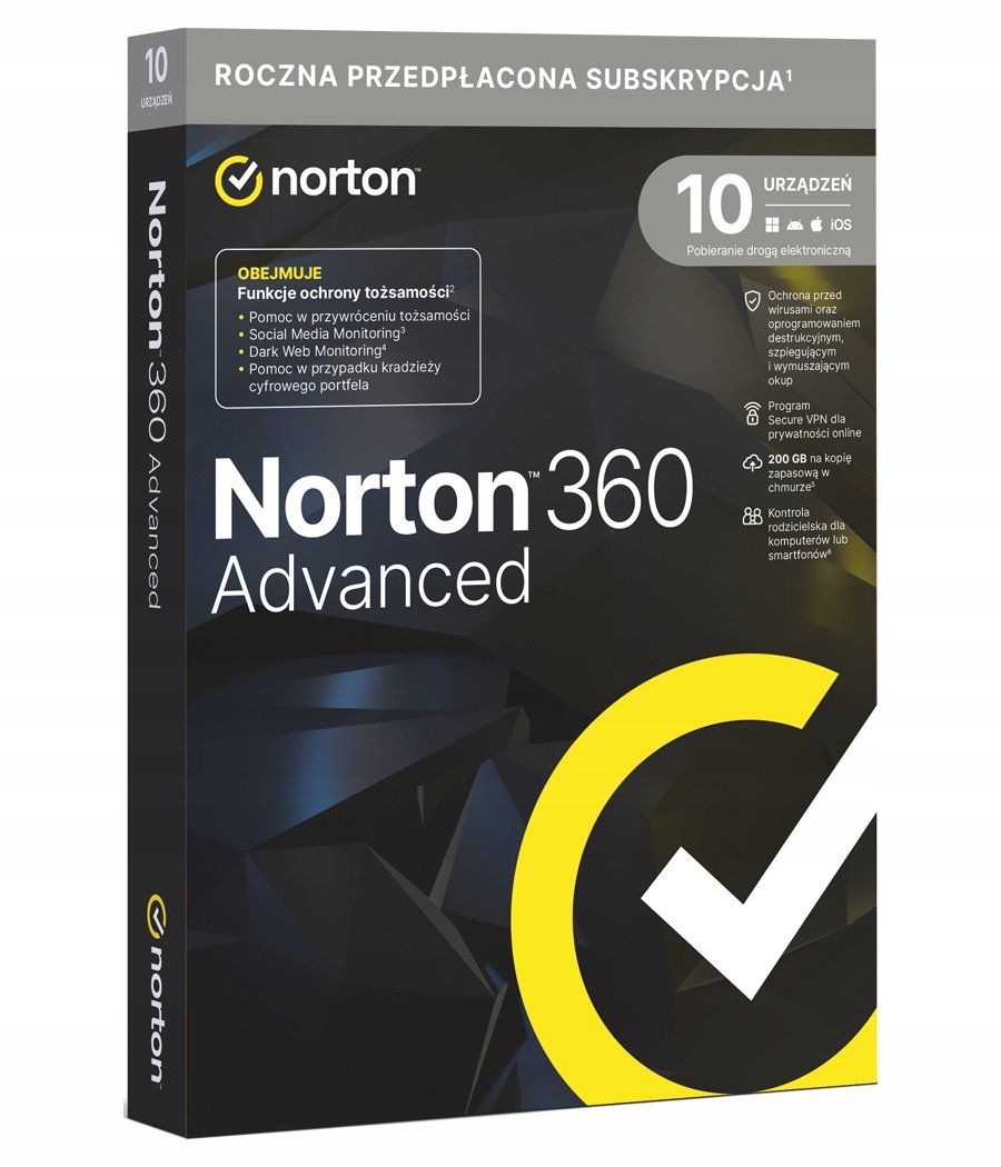 | Tytuł: | Norton 360 Advanced 10 stanowisk / 1 rok (nie wymaga karty) - 2026 |