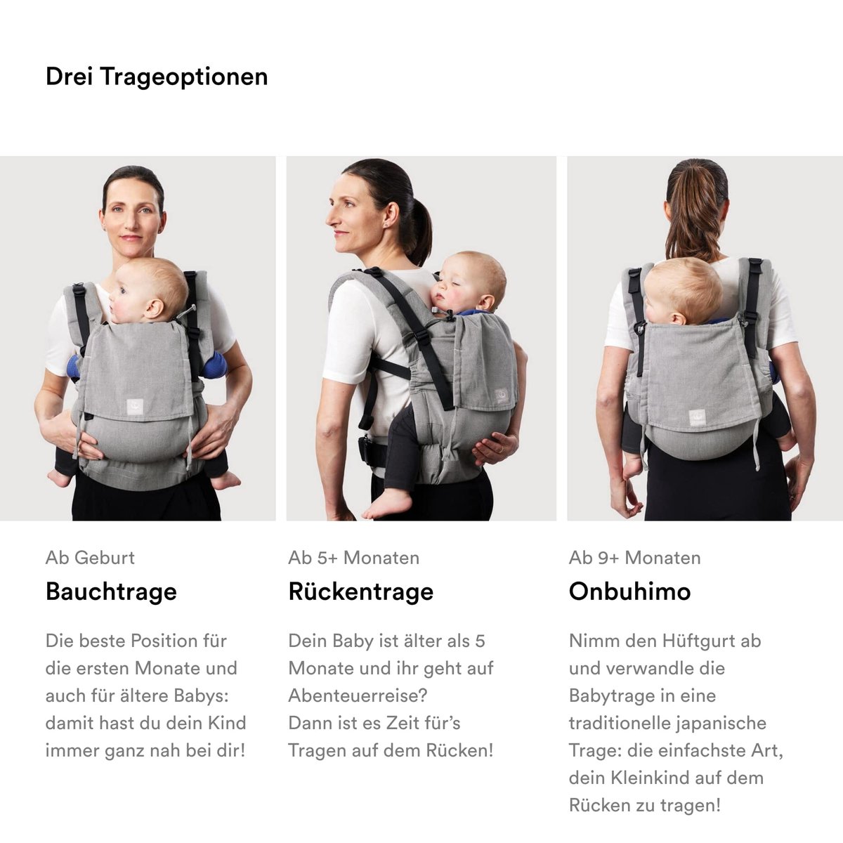 • TRZY OPCJE NOSZENIA - Opcje noszenia z przodu, z tyłu i na biodrze zapewniają rodzicom elastyczność. Pasy naramienne z dwuwarstwowego materiału pomagają równomiernie rozłożyć ciężar dziecka. Można na nie założyć ochraniacze dla dodatkowego komfortu.