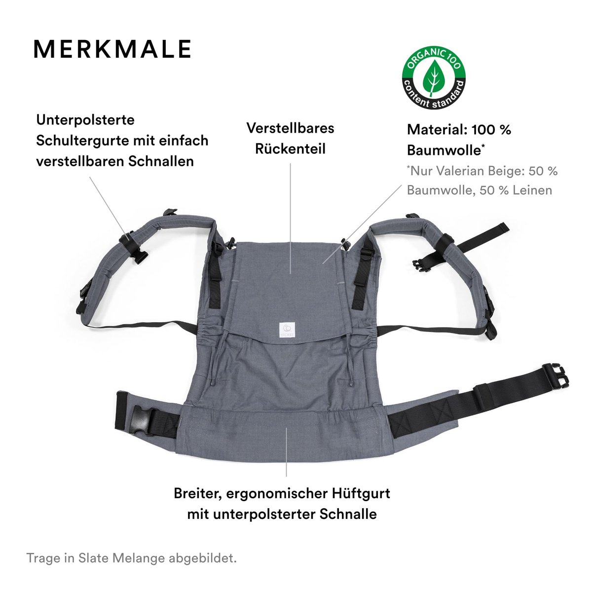 • BAWEŁNA ORGANICZNA - Nosidełko Limas zostało wykonane z miękkiej bawełny, która spełnia standardy Organic Content Standard (OCS).