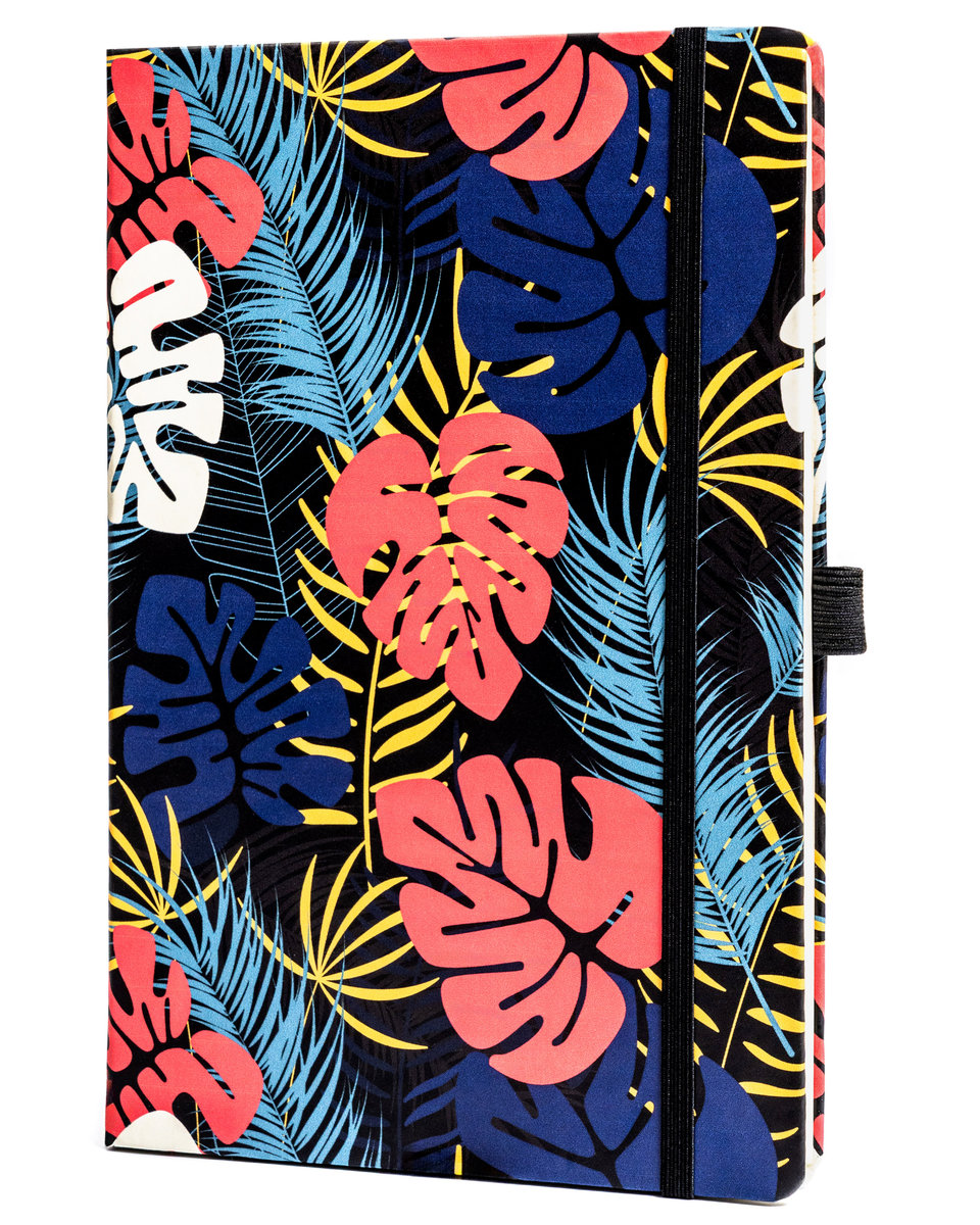 Okładka wykonana z twardej tektury zapewnia trwałość i odporność na codzienne użytkowanie, a zdobienia z motywem roślinnym dodają jej wyjątkowego uroku. Połączenie żywych kolorów i szczegółowych wzorów sprawia, że notes staje się osobistym akcentem na biurku czy w torbie.