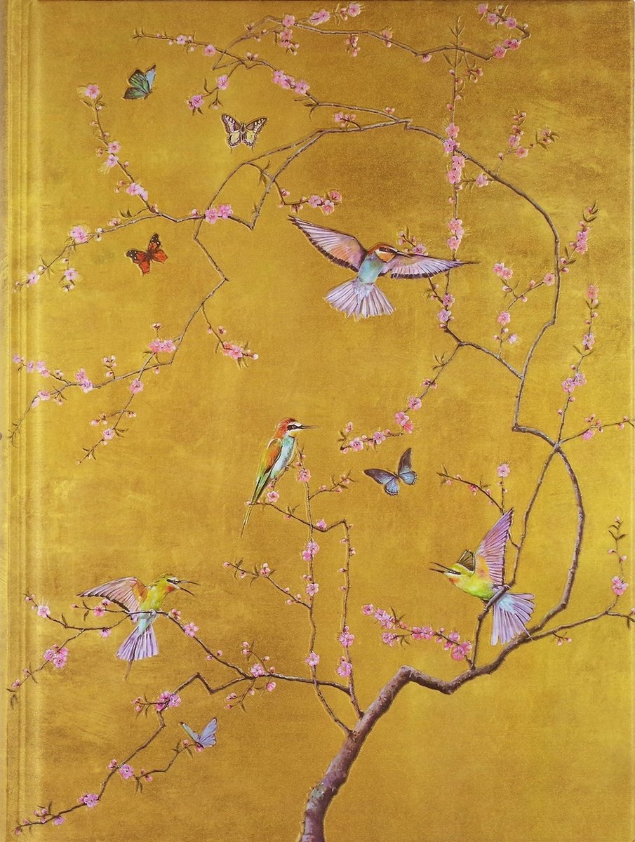 Notatnik Złoty Lot (Golden Flight) marki Peter Pauper Press to połączenie funkcjonalności z pięknem sztuki. Okładka wytłaczana, opalizująca, doskonale odwzorowuje dzieło Ruth Winding, nadając mu wyjątkowego charakteru. Złocone brzegi stron, eleganckie wyklejki oraz dopasowana wstążka jako zakładka dodają mu klasy i stylu.