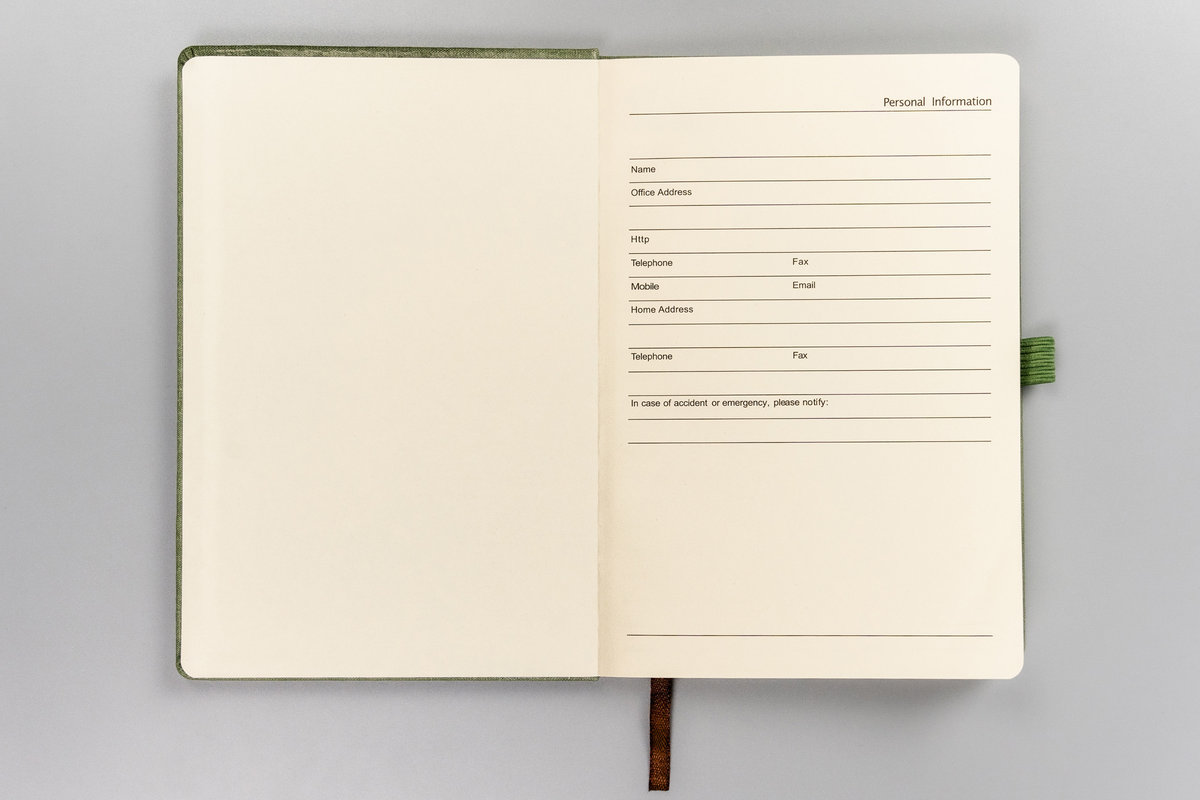 Ten stylowy notes w formacie A5 to doskonały wybór do planowania, robienia notatek czy tworzenia list zadań. Wyposażony w wstążkę jako zakładkę, ułatwia szybki dostęp do aktualnych zapisków. Wewnątrz znajdziemy także dedykowaną sekcję na dane osobowe, co czyni go praktycznym i pomocnym w sytuacjach awaryjnych.