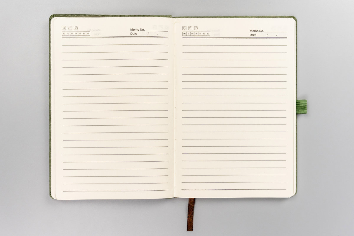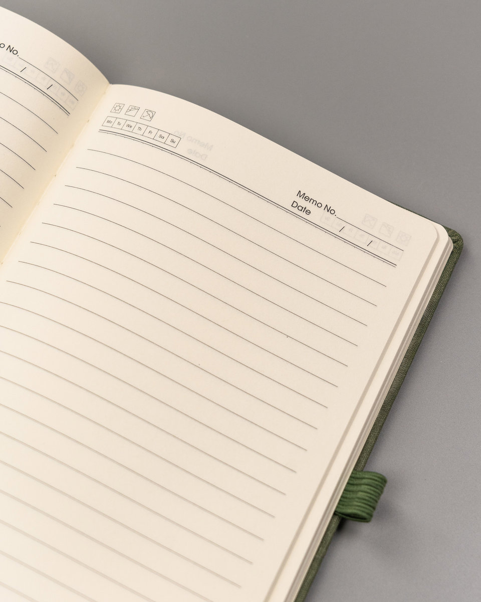 ✅ Przejrzysty układ stron z miejscem na datę i numer memo.