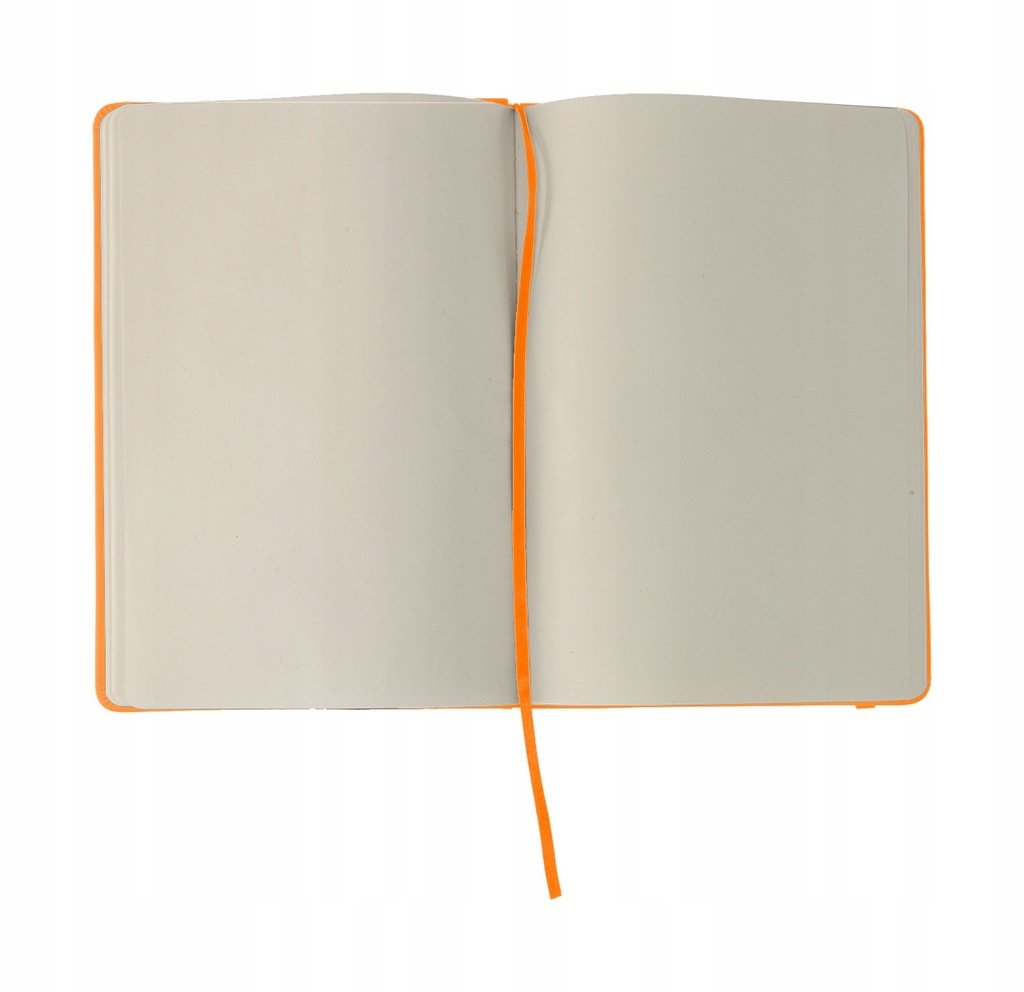 NOTES NOTATNIK ZESZYT z gumką A5 GŁADKI 100 kartek Gustowny, elegancki notes z okładką ze skóry PU ze 100 gładkimi kartkami. Zawiera zakładkę i gumkę. Kolor(y): pomarańczowy Materiał(y): Skóra ...