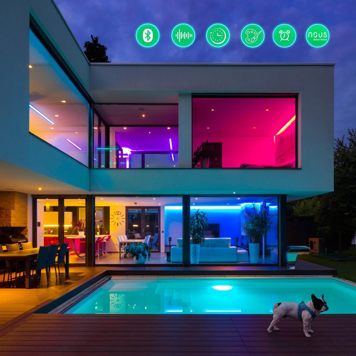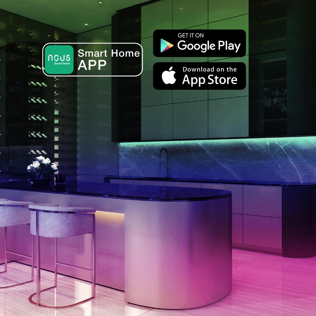 Funkcje specjalne: Niezależny kolor, efekty dźwiękowe, zegar, synchronizacja muzyki Sterowanie ze smartfona: aplikacja Nous Smart Home Zgodność z asystentami głosowymi: Alexa, Asystent Google, Siri RGB: 16 mln kolorów Wskaźnik oddawania barw: ? 80 Trwałość: 25000 godz Stopień ochrony przed wilgocią: IP44 Typ diody led: SMD 5050 IC LED Możlwiość skrócenia taśmy LED: na liniach cięcia |