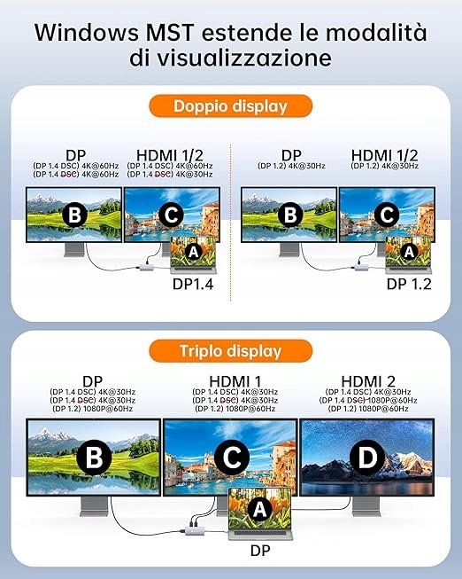Odkryj najlepszą stację dokującą USB C 7 w 1, która przekształci Twoje miejsce pracy w produktywne środowisko. Ta stacja dokująca, wyposażona w 1 port DP do 8K (30 Hz) lub 4K (120 Hz), dwa porty HDMI 4K (60 Hz), moc 100 W PD do szybkiego ładowania i 3 uniwersalne porty USB-A, idealnie nadaje się dla osób chcących zwiększyć wydajność profesjonalistów, graczy i użytkowników wykonujących wiele zadań jednocześnie. Wydajność stanowiska pracy i jakość wyświetlacza.