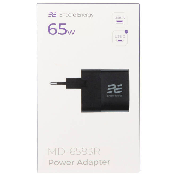| Nazwa: | Nowa ładowarka sieciowa Encore Energy GaN QC 4+ PD 3.0 USB-A USB-C x2 65W MD-6583R wyświetlacz. |