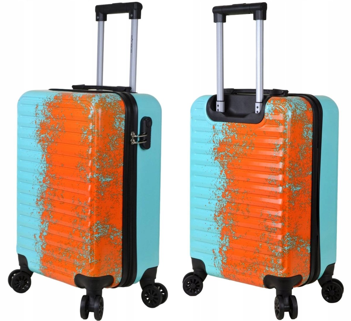 Walizka kabinowa AquaFlare turkusowo-pomarańczowa z efektem odprysków – lekka, stylowa i praktyczna!