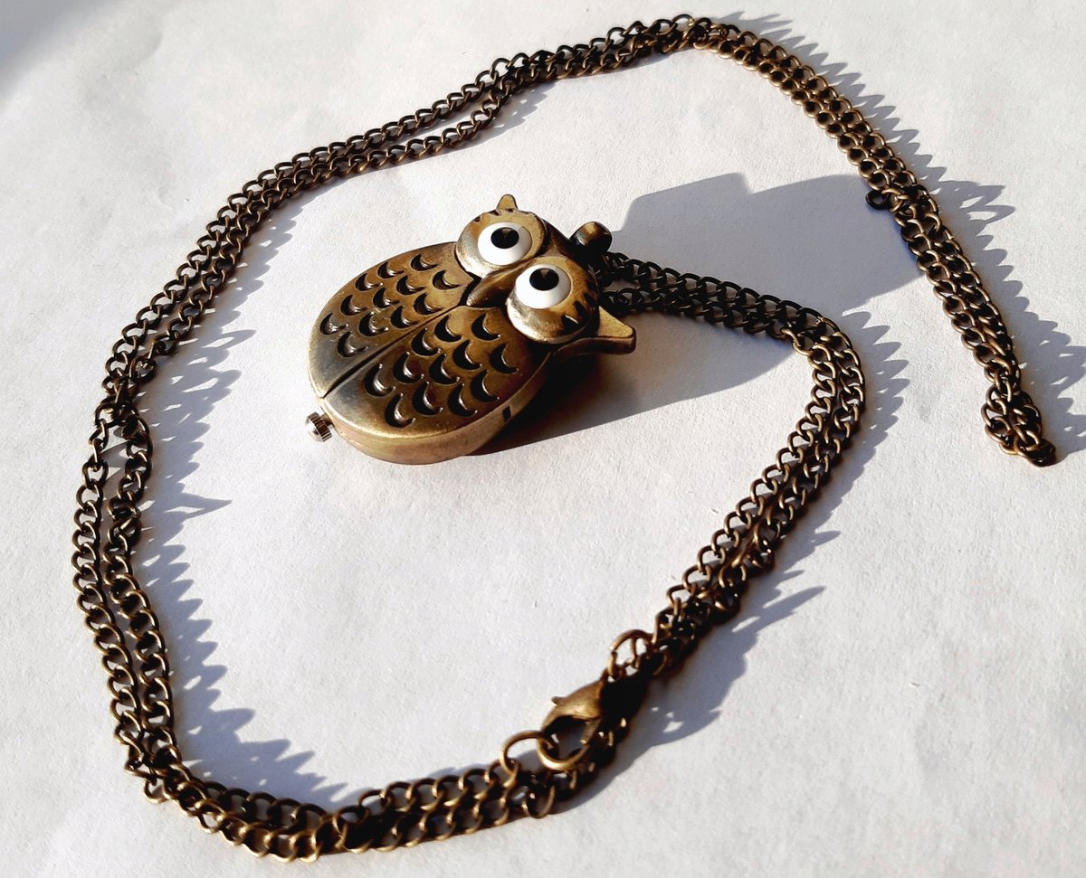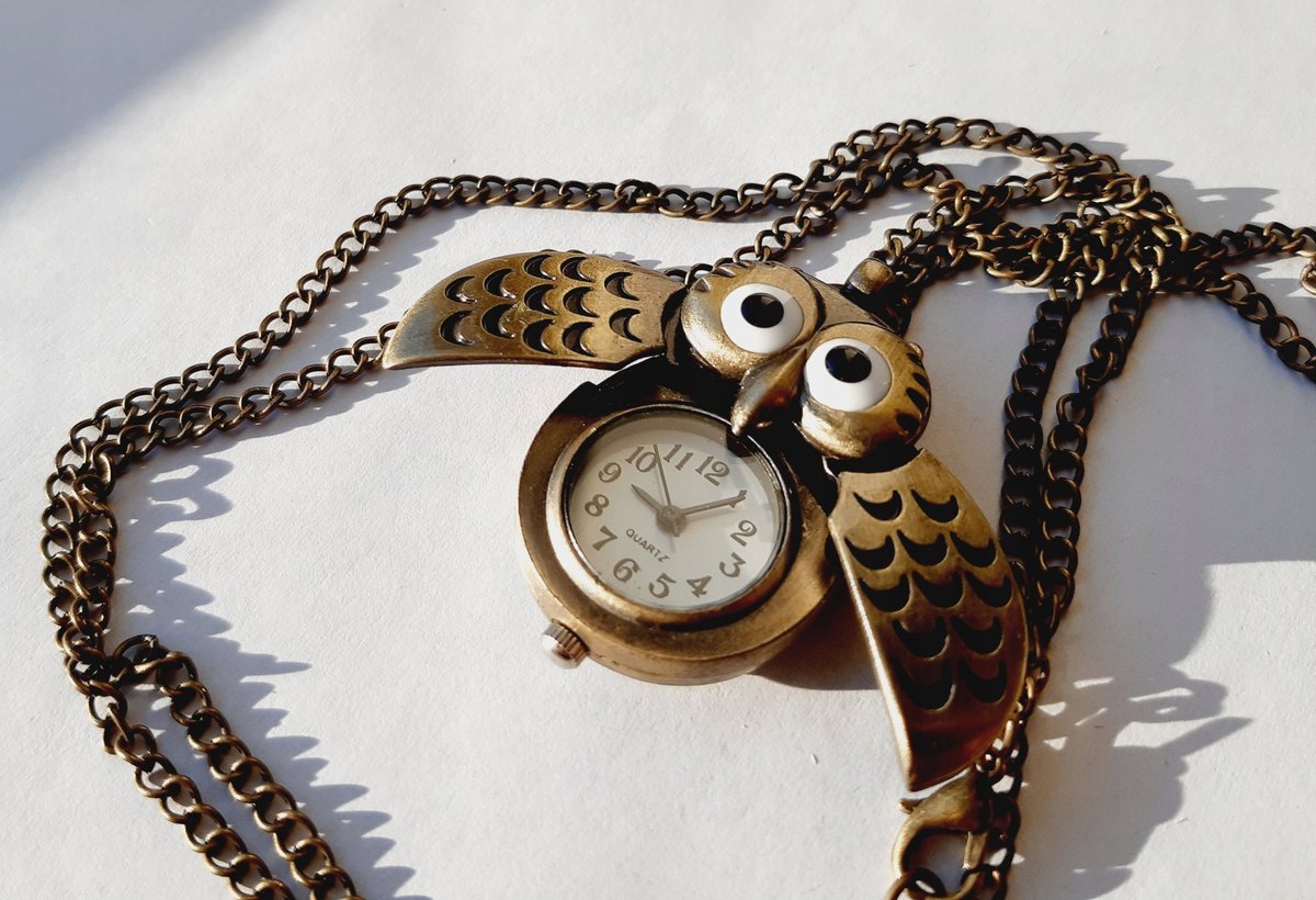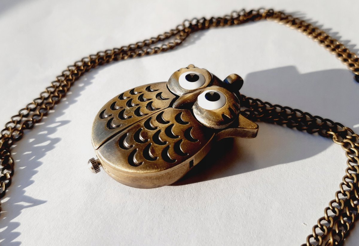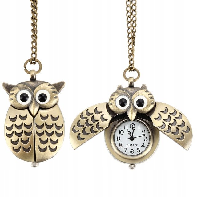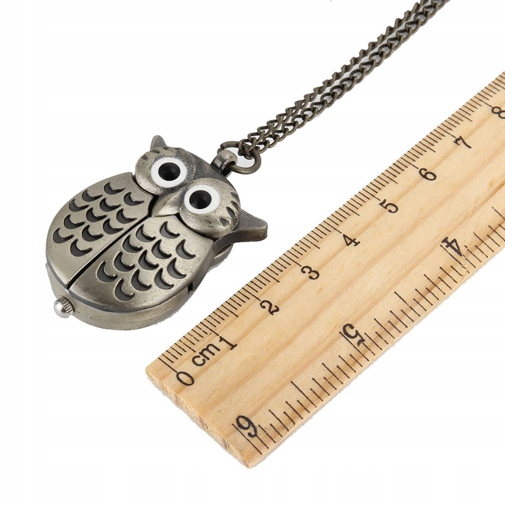 PIĘKNY, DAMSKI ZEGAREK KIESZONKOWY NA ŁAŃCUSZKU W KSZTAŁCIE SOWY