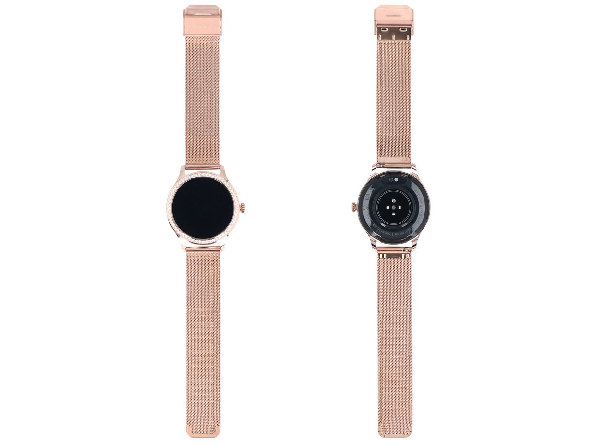 ⭐ Smartwatch damski GlacierX Pearl | Monitor cyklu, rozmowy, kroki, GPS, monitor snu | Rose Gold | Bransoleta mesh | POLSKIE MENU ⭐Odkryj świat inteligentnych rozwiązań z eleganckim ...