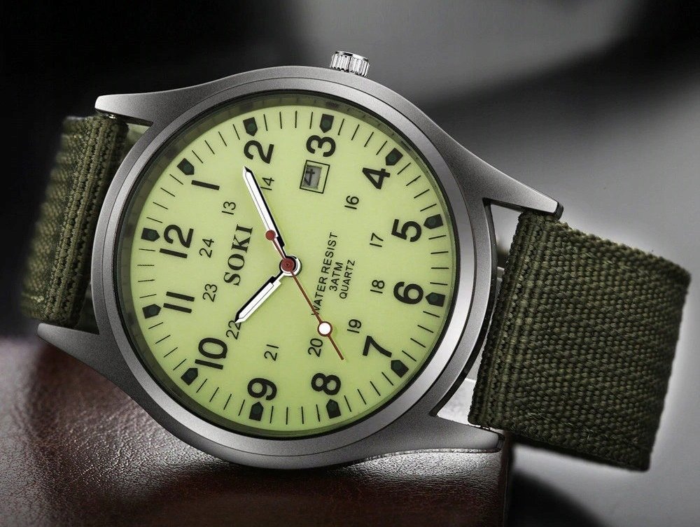 | Nazwa: | Nowy, wojskowy zegarek Soki z datownikiem, świecąca tarcza |