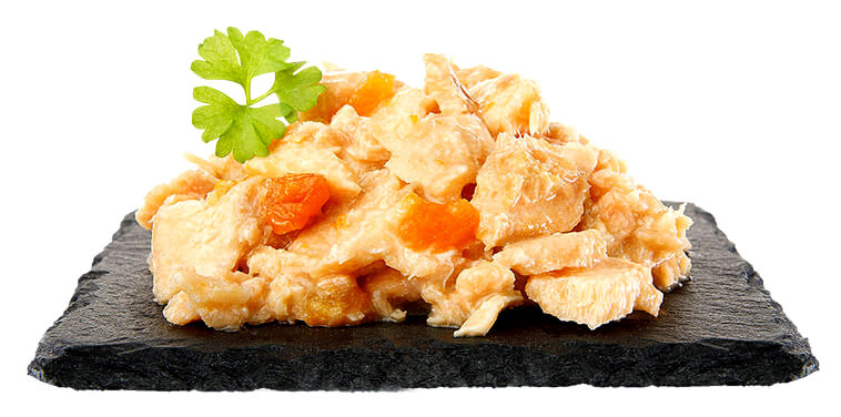 Skład: 56% filet łososia, 38,6% bulion, 4% marchewki, 1,4% minerały
