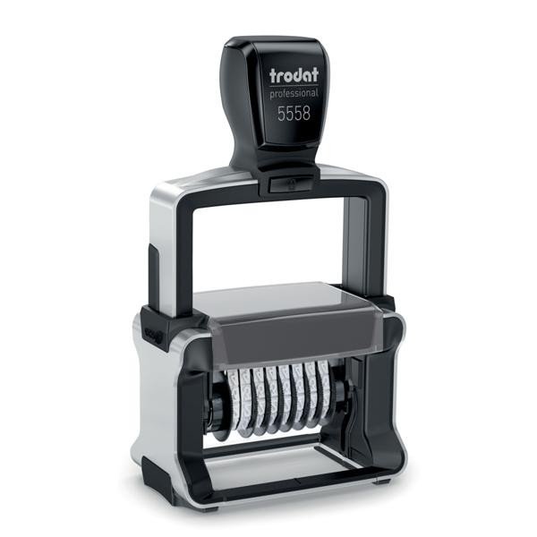 8-cyfrowy numerator 5558/PL z płytką tekstową. Maksymalny rozmiar płytki 56 x 33 mm. Wysokość czcionki 5 mm.Najbardziej wytrzymała pieczątka biurowa Trodat Professional - gwarancja 400 000 odbić. ...