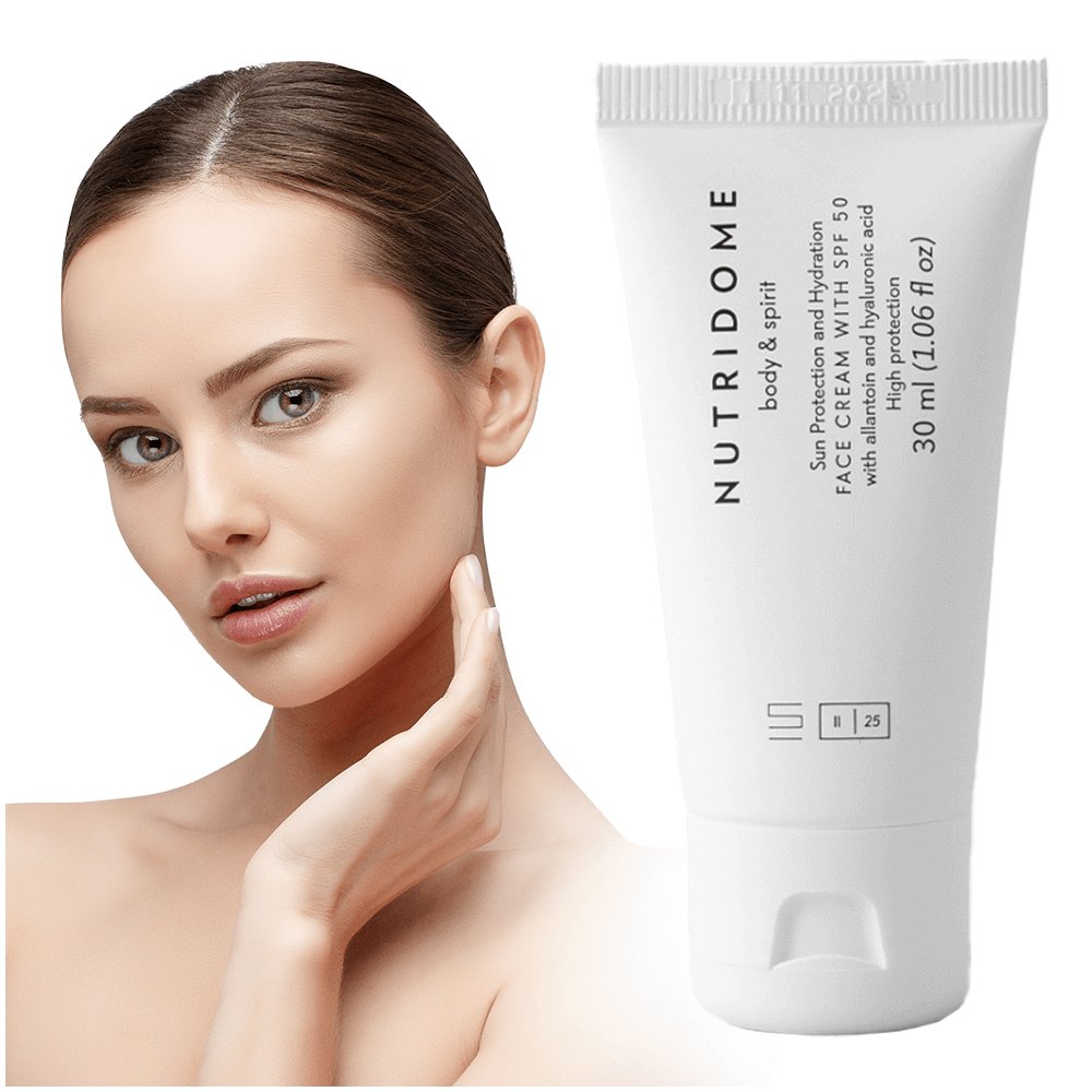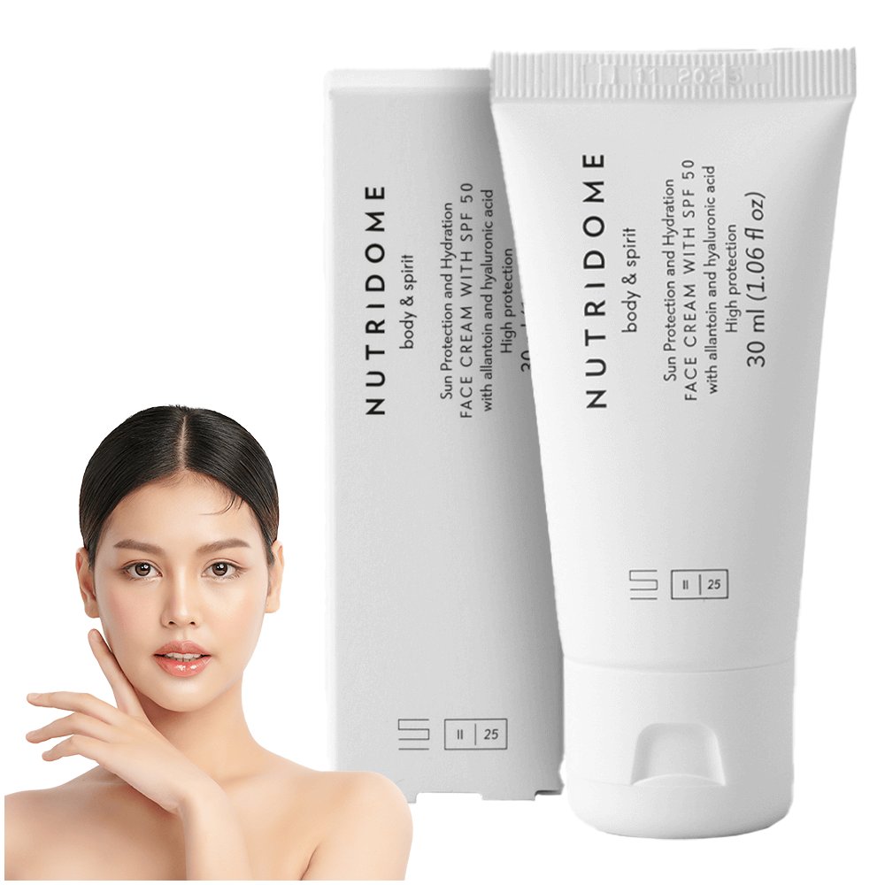 NUTRIDOME Krem do twarzy nawilżający SPF 50 wysoka ochrona Promienna skóra muśnięta słońcem wygląda pięknie, jednak podczas kąpieli słonecznych należy zachować umiar i zadbać o odpowiednią ochronę. ...