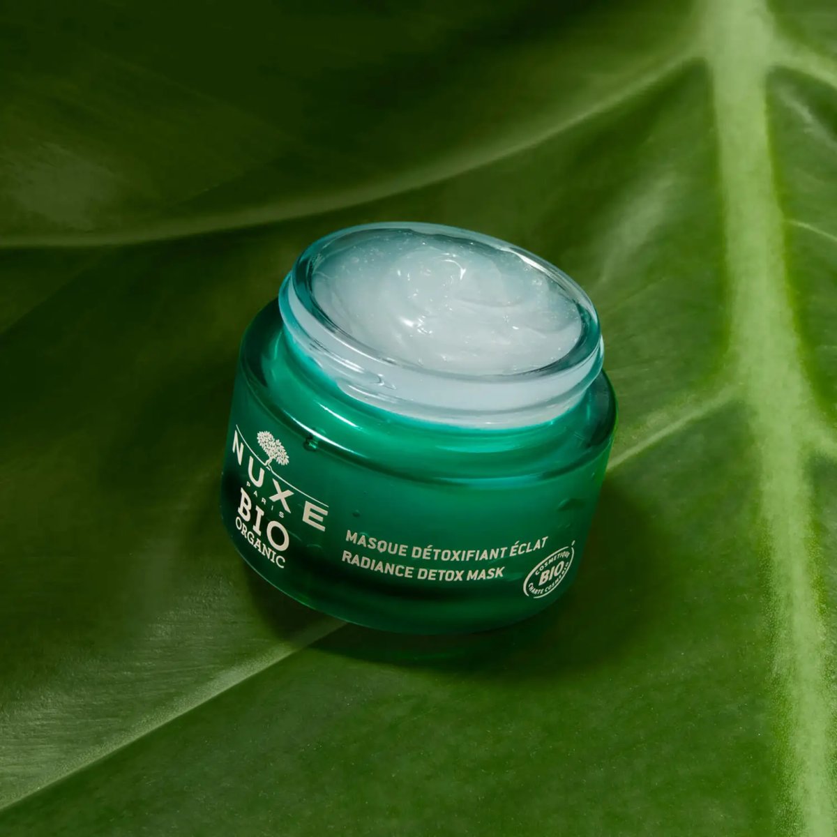 NUXE BIO Rozświetlająca Maska detoksykująca oczyszcza, wzmacnia blask skóry, odświeża. Produkt zawiera składniki BIO pochodzenia naturalnego z zielonej ekstrakcji z cytrusów i olej tłoczony na zimno z ziaren sezamu. Preparat ma wegańską formułę.