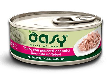 Oasy Natural to mokra karma przygotowana zgodnie z potrzebami żywieniowymi dorosłych kotów. Charakteryzuje się wysoką zawartością mięsa, które powinno stanowić główny składnik kociej diety. Oasy Natural zapewni Twojemu kotu źródło białka, witamin i minerałów, które są niezbędne do prawidłowego funkcjonowania jego organizmu. Kawałki tuńczyka i młodych sardynek są zanurzone w smakowitej galarecie. Karma nie zawiera konserwantów, sztucznych barwników czy ulepszaczy.