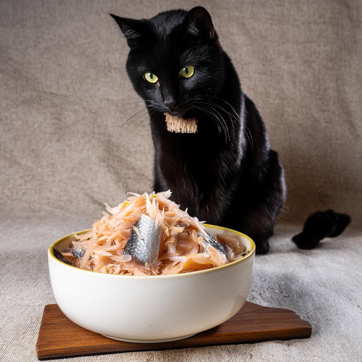 tuńczyk 44.3%, mł. sardynki (encrasicholina heteroloba) 5.7%, ryż 1%
