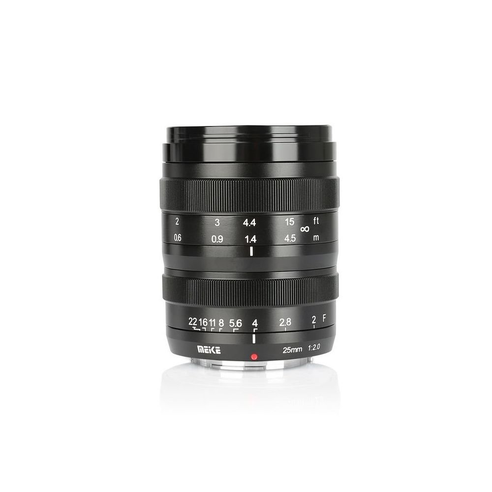Manualny obiektyw Meike o ogniskowej 25mm i światłosile f/2.0.