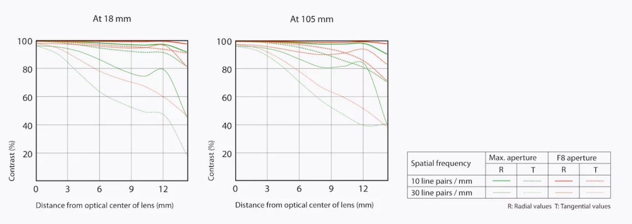 Ten obiektyw typu G do korpusów z mocowaniem E rejestruje doskonałe zdjęcia i filmy. Jest wyposażony w system elektrycznej regulacji 6-krotnego zoomu. Utrzymuje doskonałą rozdzielczość i kontrast w całym zakresie ogniskowych — od 18 do 105 mm — przy stałym maksymalnym otworze przysłony F4. Dźwignia i pierścień na tubusie zapewniają płynną regulację prędkości zoomu oraz dobry chwyt.