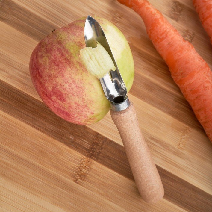 Klasyczna obieraczka stała polskiej marki Frolee powstała z połączenia blachy nierdzewnej i drewna. To praktyczne narzędzie kuchenne sprawi, że obieranie warzyw lub owoców, nigdy nie było prostsze!
