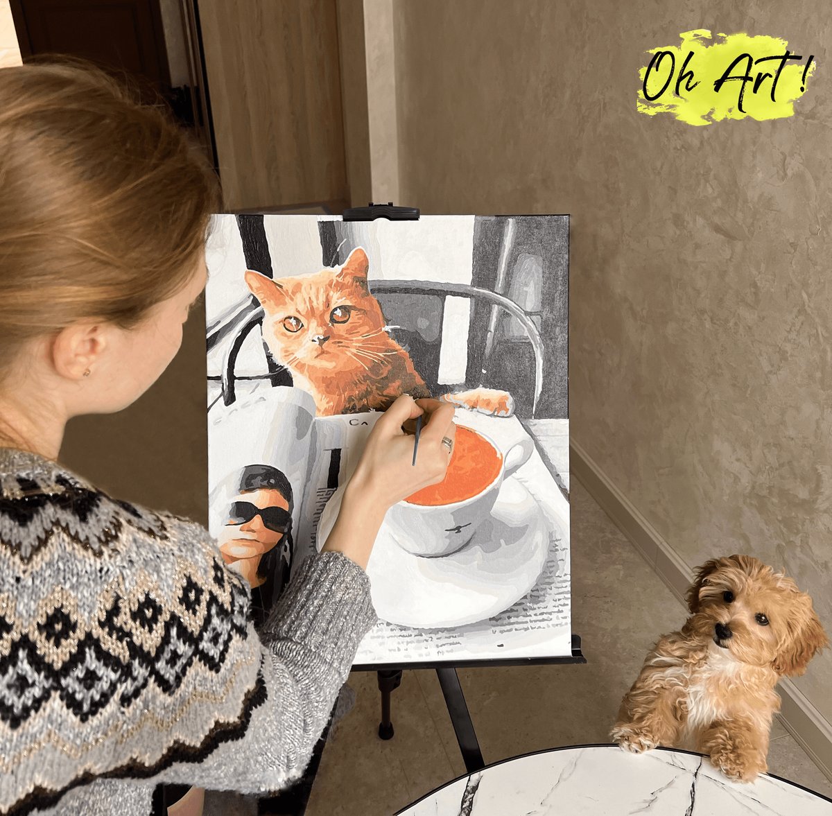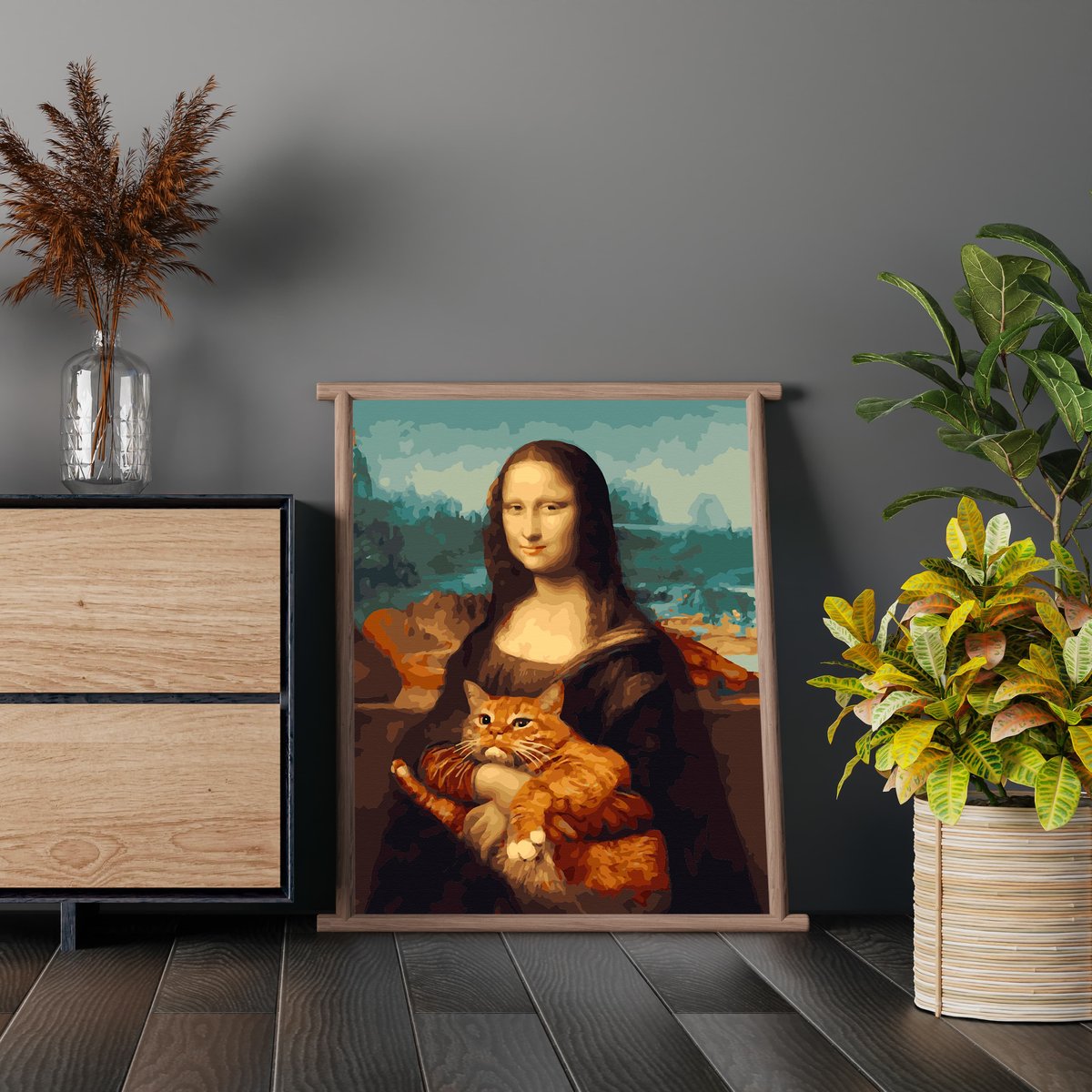 Właśnie zrecenzowałem Obraz Malowanie po numerach NA RAMIE, Mona Lisa i rudy kot, 40x50 | Oh Art!