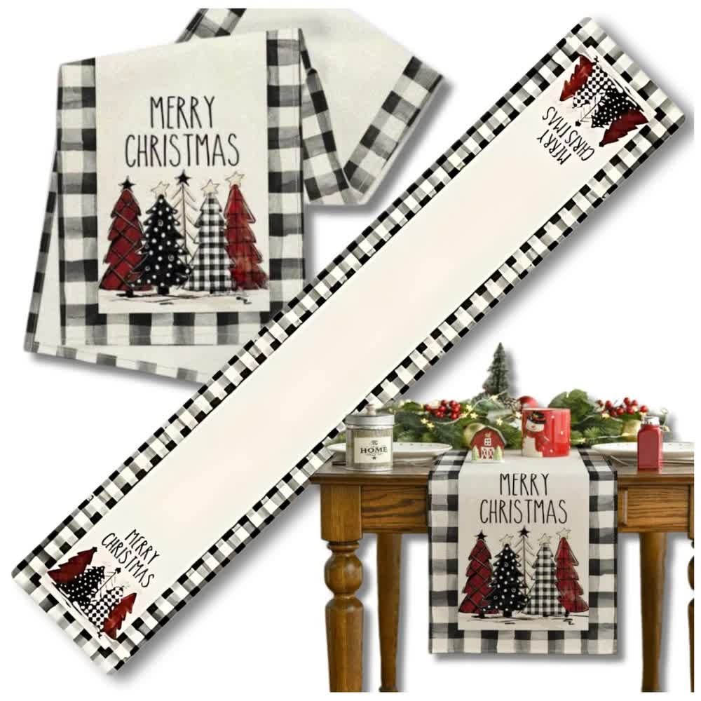 Wprowadź wyjątkowy, świąteczny klimat do swojego wnętrza z tym uroczym bieżnikiem świątecznym ozdobionym motywem kraty, napisem "Merry Christmas" oraz stylowymi choinkami w odcieniach czerwieni, czerni i bieli. Ten dekoracyjny bieżnik w skandynawskim stylu to idealny dodatek, który łączy tradycyjną świąteczną atmosferę z nowoczesnym designem. Czarno-biała kratka w połączeniu z kolorowymi choinkami dodaje elegancji, dzięki czemu bieżnik świetnie sprawdzi się zarówno w klasycznych, jak i nowoczesnych aranżacjach.