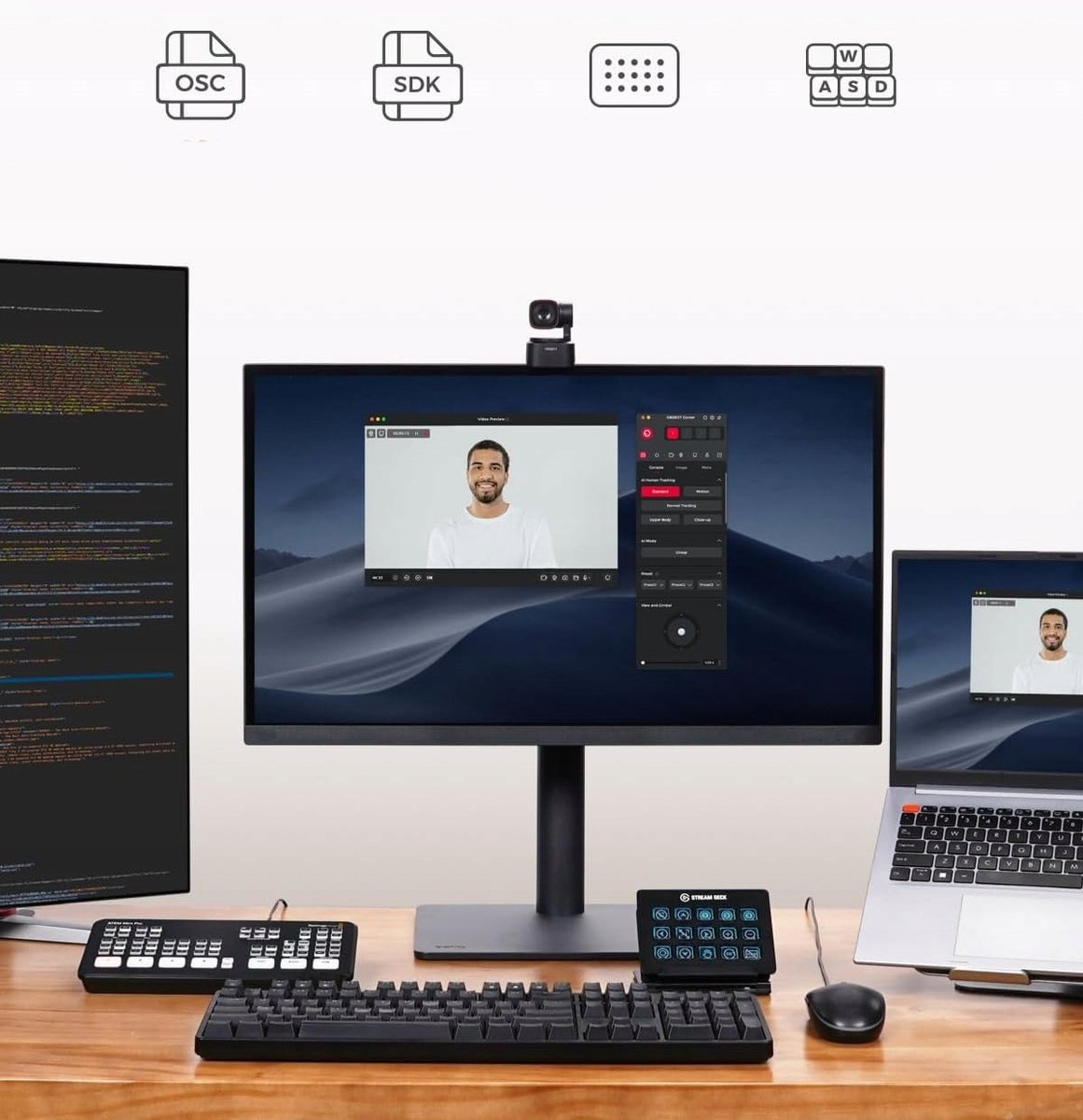 - 【Dostosuj przepływ pracy】Kamera internetowa Tiny 2 Lite umożliwia dostęp do strumienia wideo bez konieczności pobierania aplikacji. Ponadto obsługuje funkcje SDK, OSC, Stream Deck i globalne funkcje klawiszy skrótu, dzięki czemu można dostosować własne wrażenia z kamery internetowej 4K.