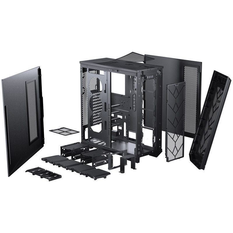 Najważniejsze cechyBig-Tower firmy Phanteks z zamkniętym panelem bocznymDla płyt głównych do SSI-EEB i E-ATXRóżne opcje chłodzenia powietrzem i wodąMożliwość zamontowania 6 wentylatorów 140 lub 15 wentylatorów 120Radiatory: maks. 2x 480 mm, 1x 360 mm i 1x 120 mmChłodzenie CPU do 195 mm / karty graficzne do 503 mmDo 10x 3,5 lub 11x 2,5-calowych slotów na nośniki danychPanel I/O z 1x USB 3.1 Type-C i 4x USB 3.0 Type-AUchwyty montażowe dla zasilaczy serwerowych ATX lub 2U