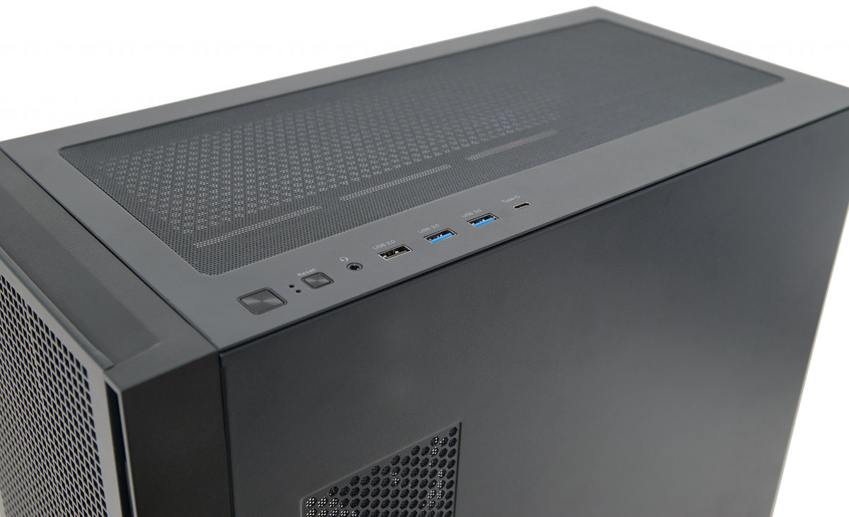 Na górnym panelu obudowy znajduje się nowoczesny zestaw portów I/O, w tym super szybki port USB-C, dwa porty USB 3.0, port USB 2.0 oraz złącza audio. Dzięki temu masz łatwy dostęp do wszystkich niezbędnych urządzeń peryferyjnych. Obudowa pozwala na montaż do dwunastu wentylatorów 120 mm oraz jest w pełni kompatybilna z systemami chłodzenia cieczą AIO, w tym z chłodnicami o rozmiarze 360 mm na górze.