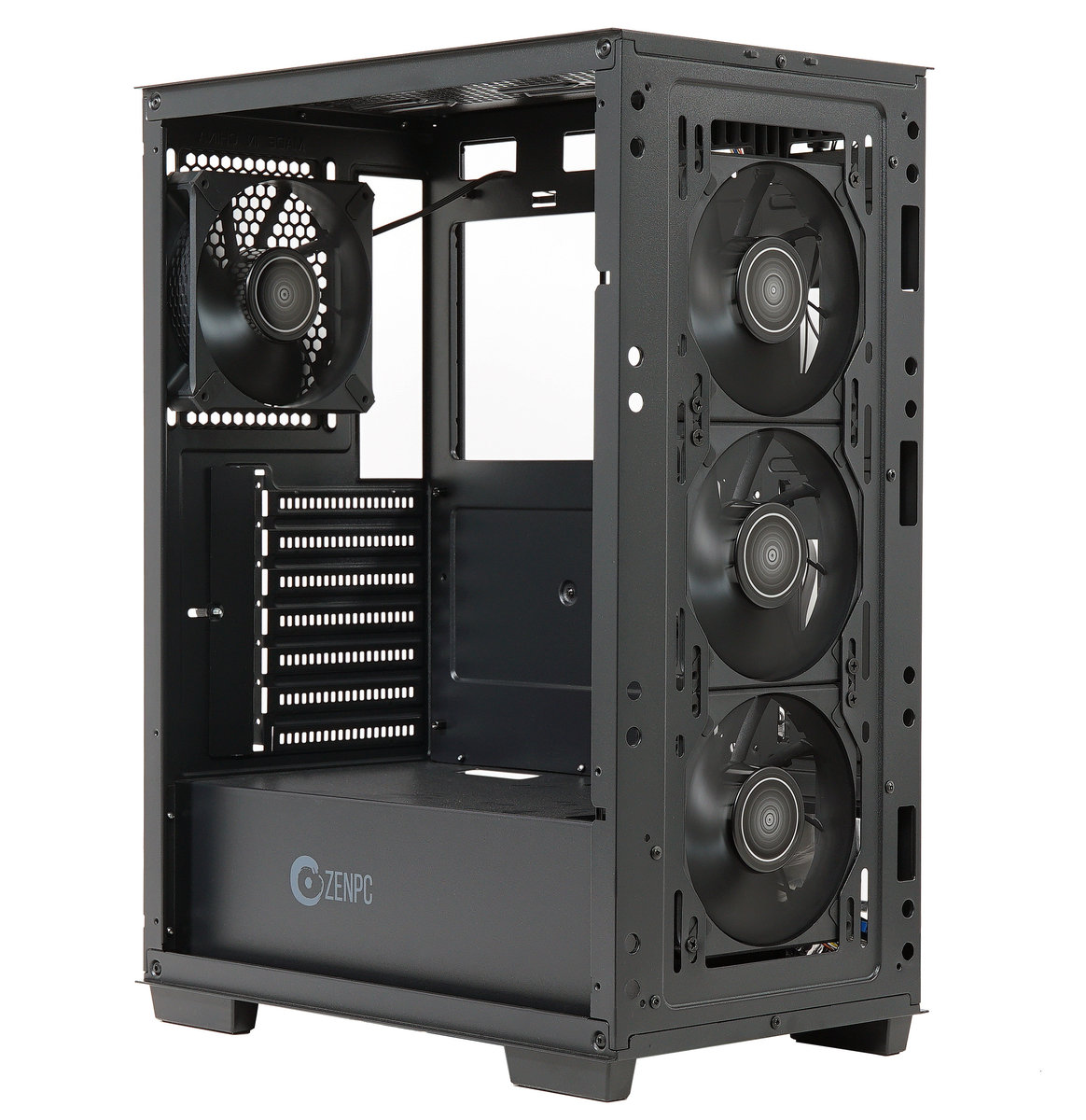 ZENPC Flow TG Black 4x Fander P12 PWM PST została stworzona z myślą o wysokowydajnych systemach komputerowych wymagających efektywnego chłodzenia dla komponentów o dużym zapotrzebowaniu na energię. Przedni panel z tysiącami precyzyjnych otworów oraz górny panel z licznymi wentylacjami zapewniają nieograniczony przepływ powietrza, co skutecznie odprowadza ciepło. Technologie PWM i PST pozwalają na precyzyjną kontrolę prędkości wentylatorów, gwarantując cichą pracę i optymalne chłodzenie. Solidna konstrukcja oraz wysokiej jakości komponenty Fander P12 zapewniają długą żywotność, czyniąc zestaw idealnym wyborem dla wymagających użytkowników.