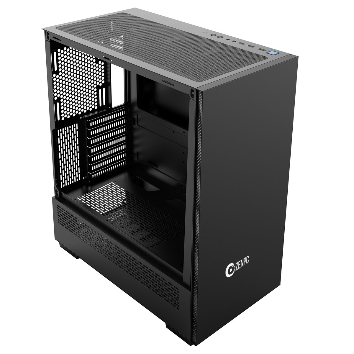 Obudowa ZENPC Z3 Solid to konstrukcja, która została zaprojektowana z myślą o zapewnieniu wydajnego obiegu powietrza. Przedni panel od przodu nie posiada otworów wentylacyjnych, te znajdują się tylko po bokach. Panel górny posiada natomiast liczne otwory, przez które ciepłe powietrza z wnętrza obudowy ma możliwość wydostania się na zewnątrz. Dodatkowo w obudowie ZENPC Z3 Solid zastosowano rozwiązanie z obudów klasy premium, które potrafią kosztować nawet kilka razy więcej. Pod bocznym panelem, na komorze zasilacza umieszczony został panel boczny z licznymi otworami wentylacyjnymi. Rozwiązanie takie pozwala na jeszcze bardziej optymalny obieg powietrza i wpływa pozytywnie na obniżenie temperatur zarówno dysków twardych zamontowanych w komorze zasilacza jak i również dzięki temu, że górna część komory zasilacza również jest wentylowana udostępnia dostęp do chłodnego powietrza z zewnątrz dla karty graficznej.Stwórz idealny system chłodzenia