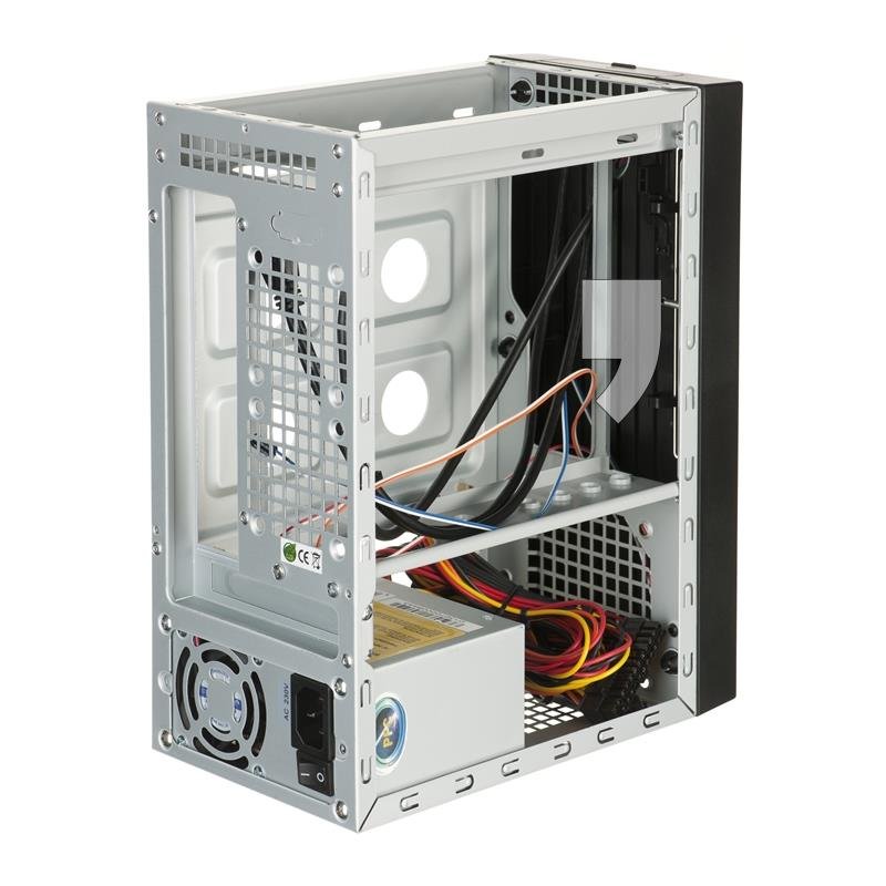 możliwość montażu napędów optycznych i kart rozszerzeń ergonomicznie umieszczone porty I/O wbudowany zasilacz mieści standardowy napęd optyczny 5,25" jeden slot rozszerzeń dla kart PCI/PCIe oszczędza