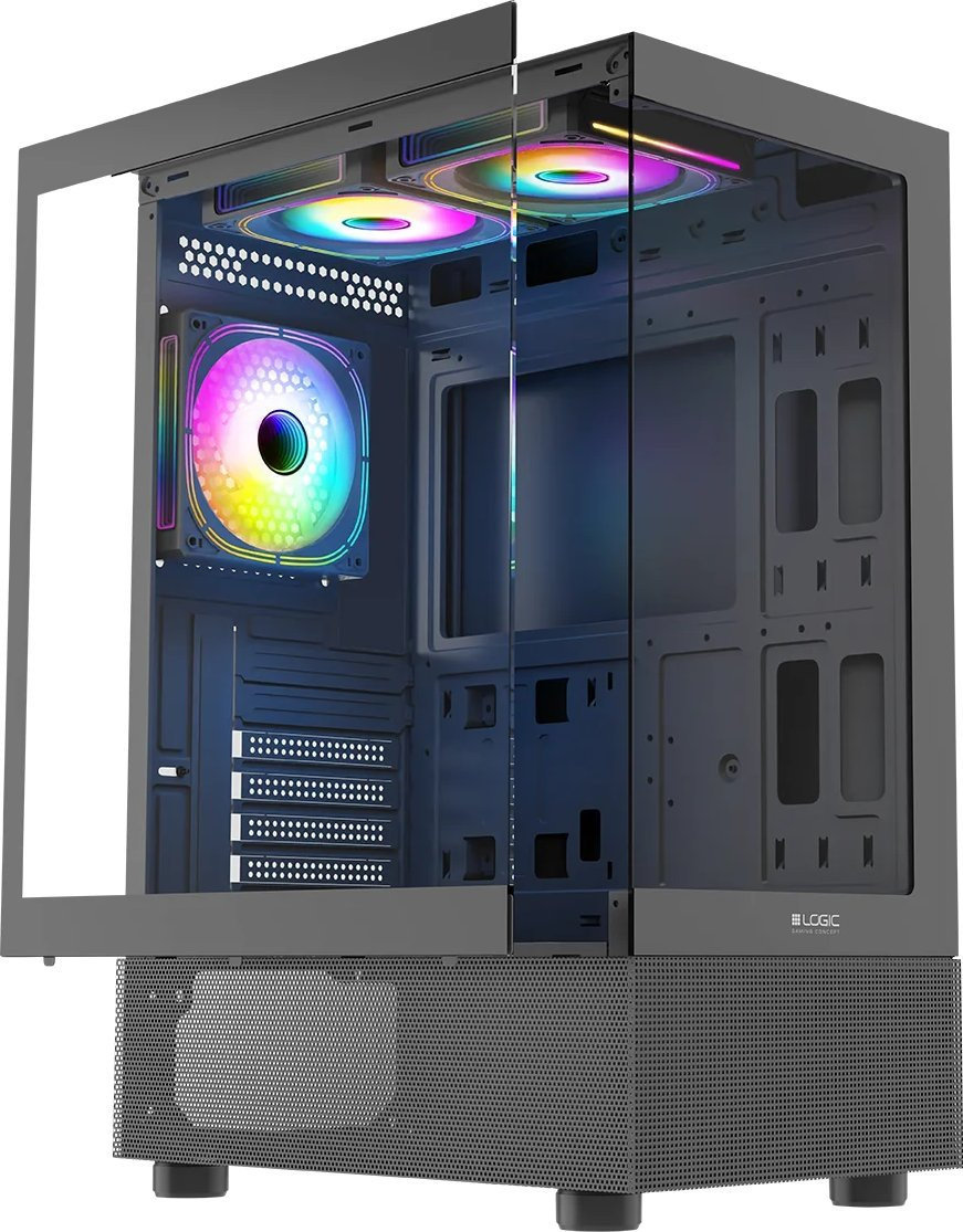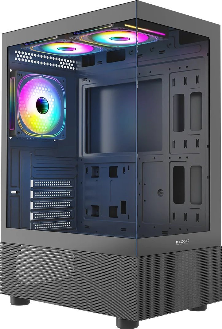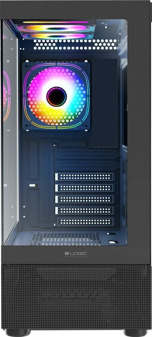 Jeżeli jesteś miłośnikiem podziwiania zakupionych elementów - obudowa Logic Look ARGB Midi jest dla Ciebie! Przeszklony panel boczny i przedni w najlepszy możliwie sposób eksponują całe wnętrze komputera. Jednak nie tylko estetyczne rozwiązania przemawiają za tą obudową. Są tu również zainstalowane trzy wentylatory 120 mm ARGB z kontrolerem obrotów, do tego złącze USB-C oraz przewiewne elementy w dolnej części konstrukcji, poprawiające obieg powietrza. Pomimo swojego gamingowego rodowodu, obudowa sprawdzi się też w zadaniach biurowych i codziennej pracy. Możliwość zbudowania uniwersalnego i wydajnego komputera to niewątpliwie jej zaleta.